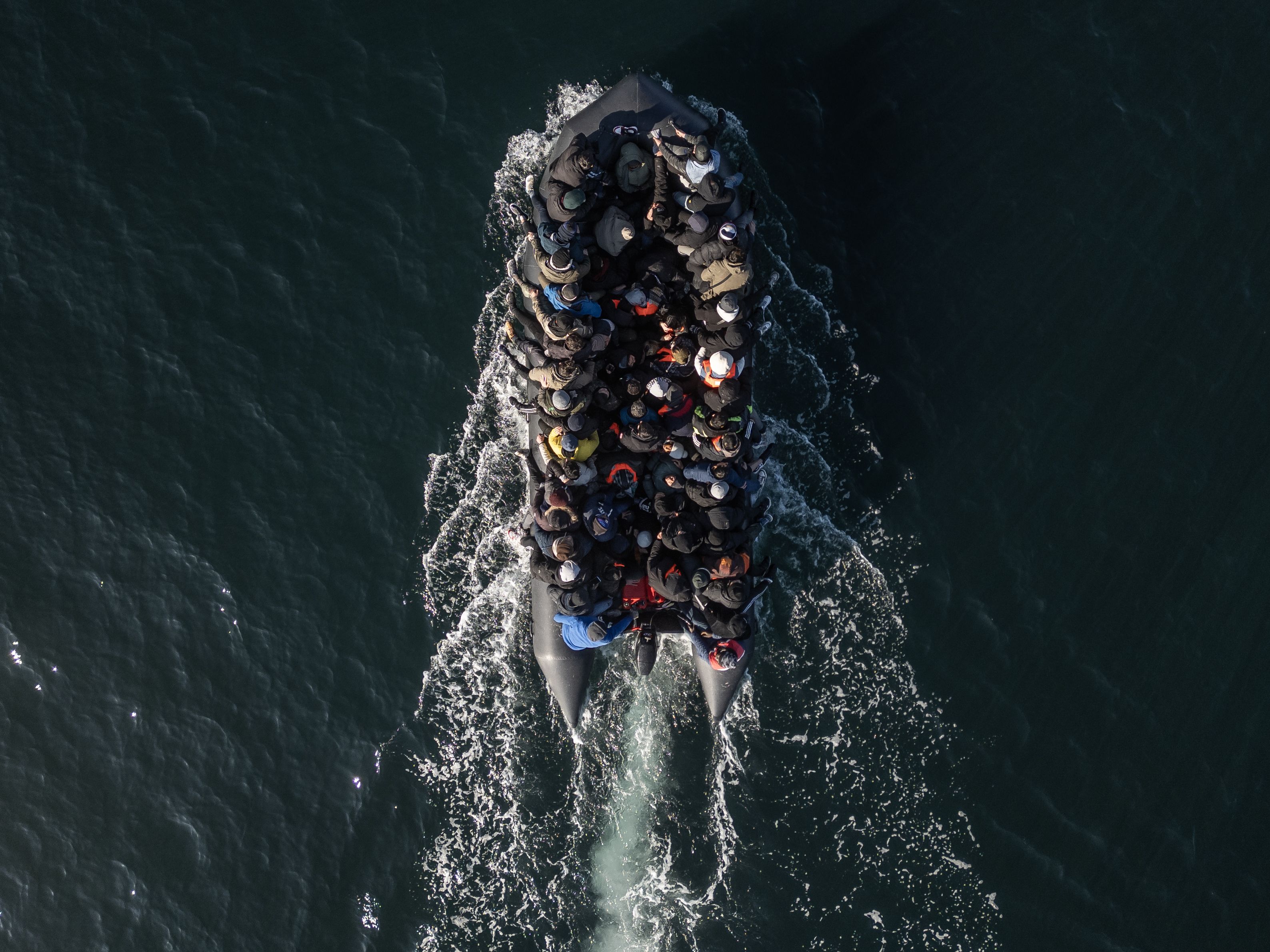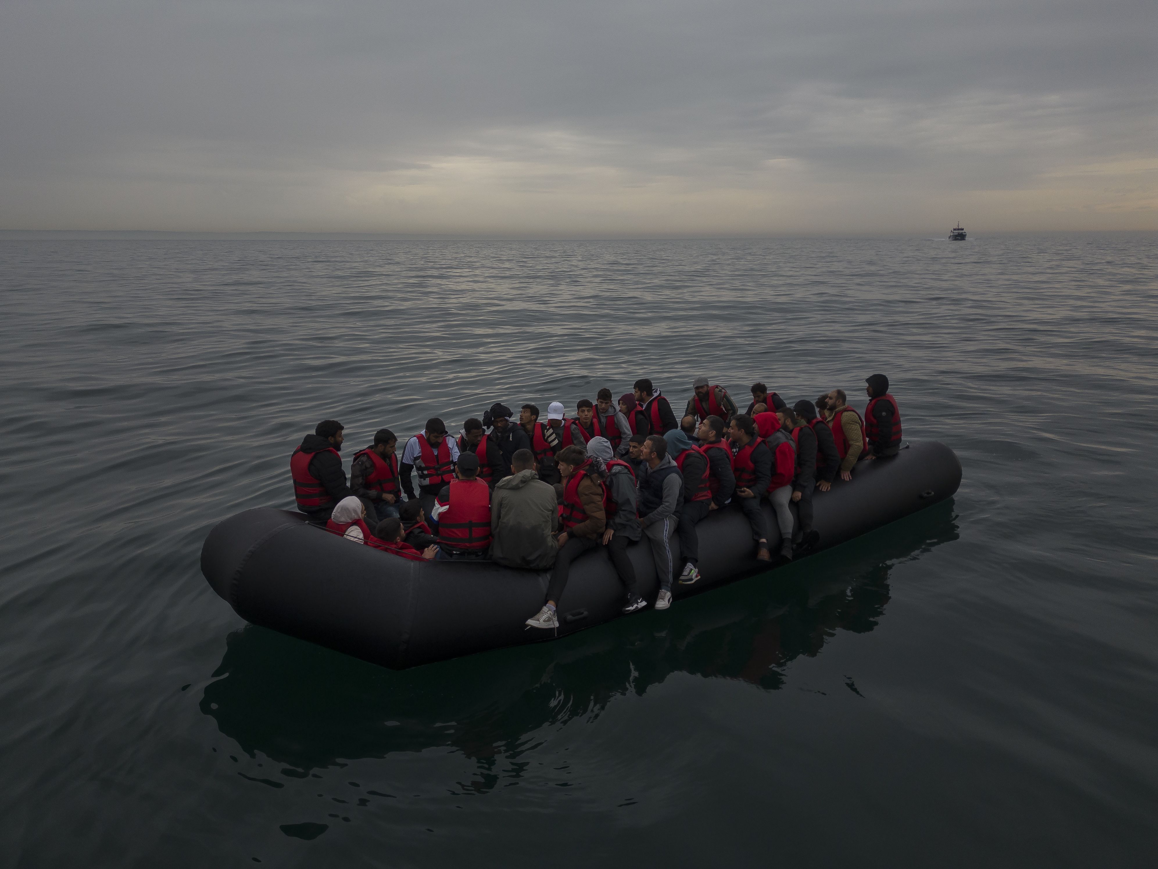 An inflatable dinghy carrying about 65 migrants across the English Channel in March 2024. Migrants can drown or be caught in the middle of shoot outs between rival smuggling gangs when making the dangerous journey. Getty Images
