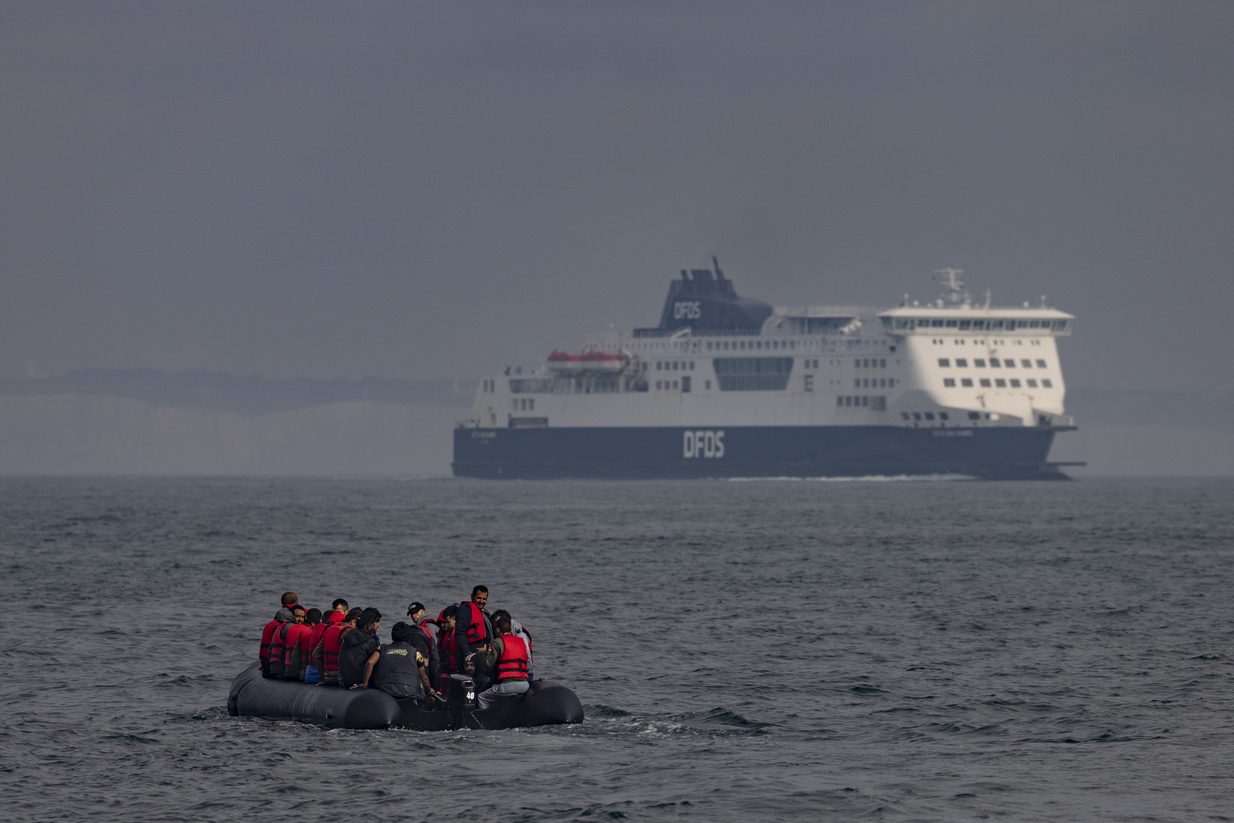 An inflatable boat carrying migrants crosses the shipping lane in the English Channel from northern France towards Dover in August 2022. Getty Images