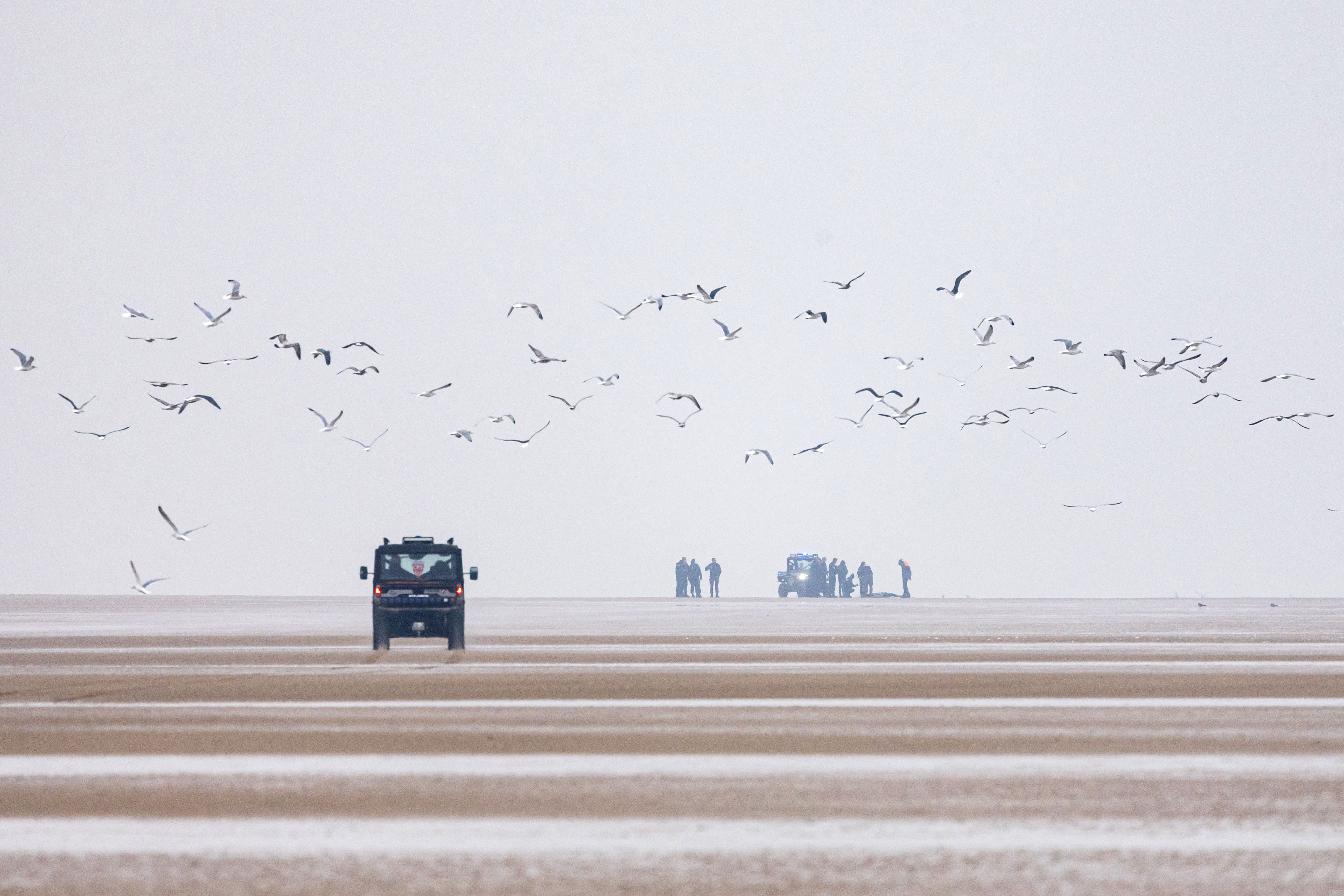 French authorities recover the body of a migrant washed ashore a beach in Sangatte, France, in January 2025. AFP