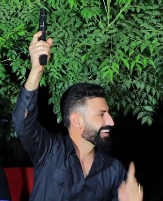 A screengrab from a YouTube video showing Amanj Zada shooting his gun in celebration as people call him 'the best smuggler' at a party. Photo: NCA