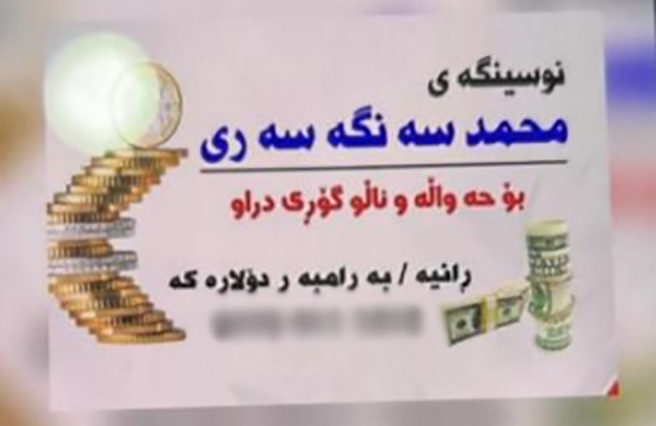 One of the money exchanges named in Shamo and Khdir’s case belongs to Mohammed Sangasari. His business also sits in the dollar market in Ranya, facing the mosque. It is easy to identify, with his own name above the door.