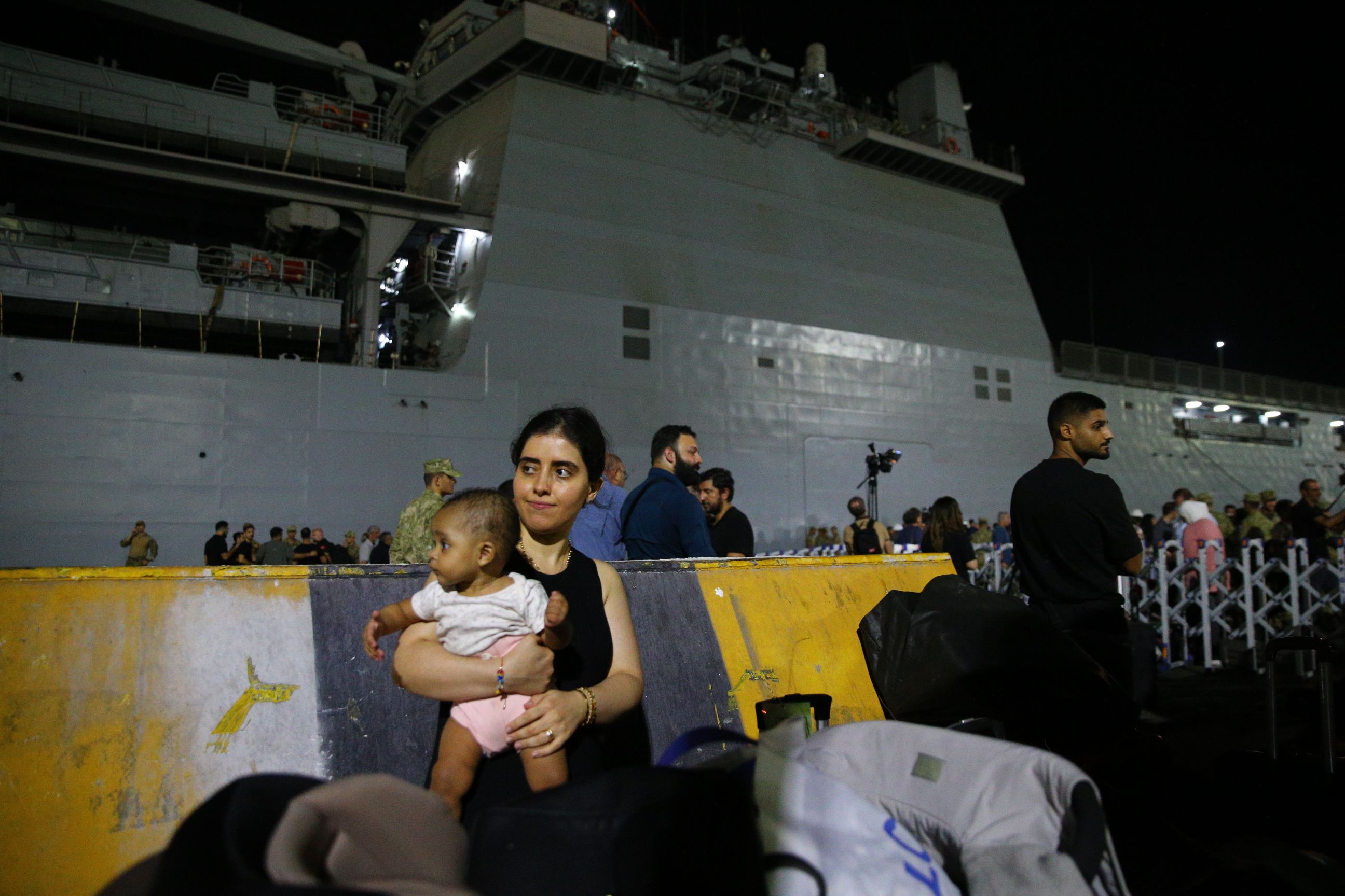 People fleeing Lebanon arrive in Mersin's port in Turkey by naval ship on October 11. Anadolu