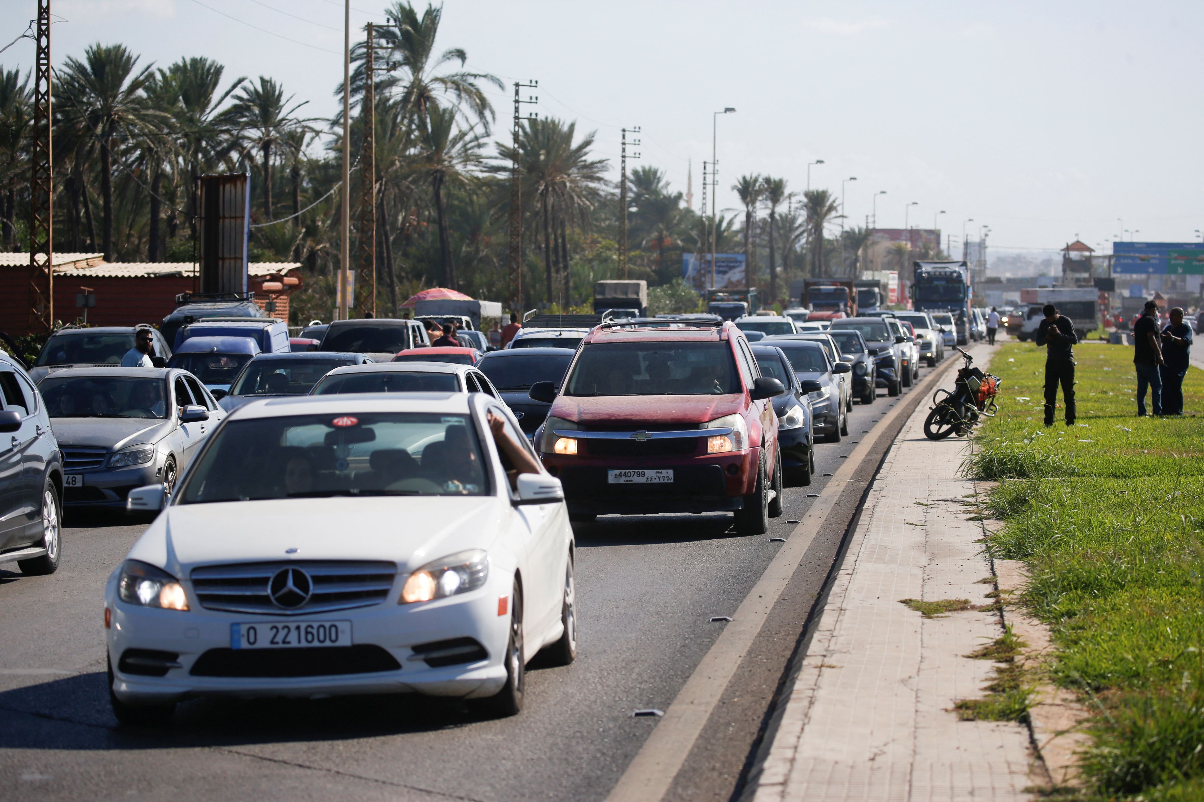 Displaced Lebanese are caught in heavy traffic as they flee north away from bombing in the south on September 23. Reuters