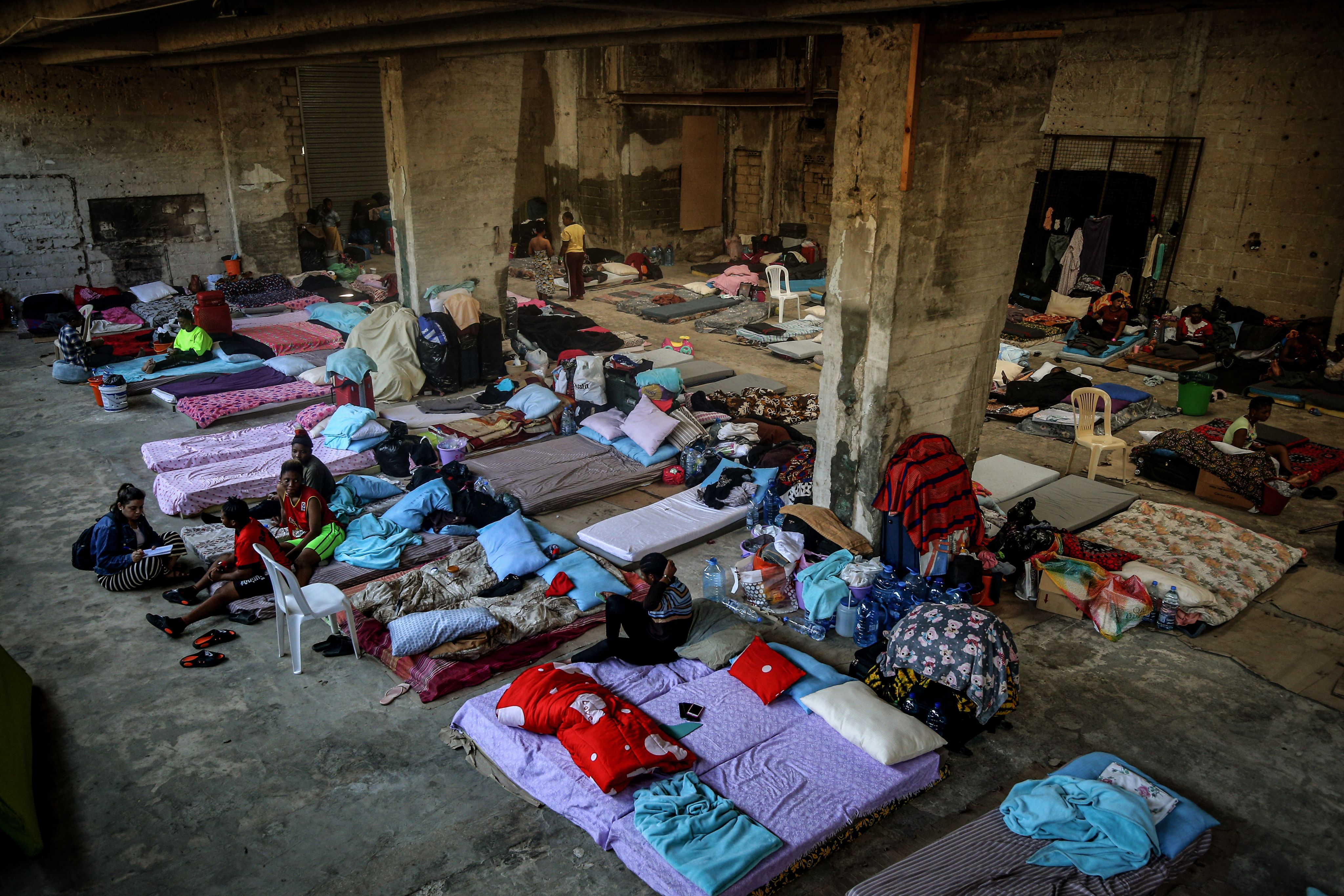 Displaced migrant workers seek safety at a warehouse being used as a shelter in Beirut. Photo: Marwan Naamani