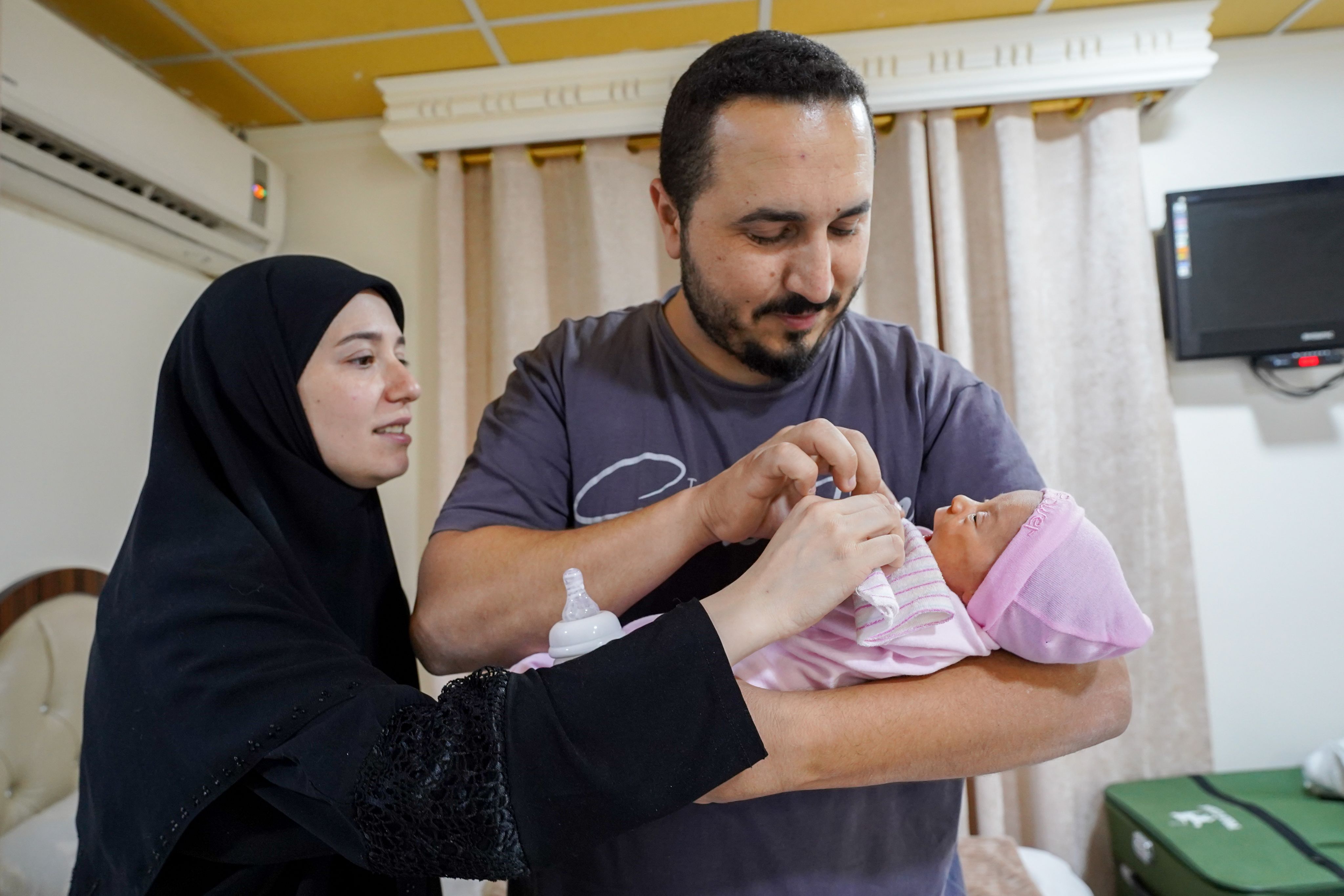 A Lebanese couple that fled to Iraq for safety hold their baby, born in Najaf, on October 11. Anadolu