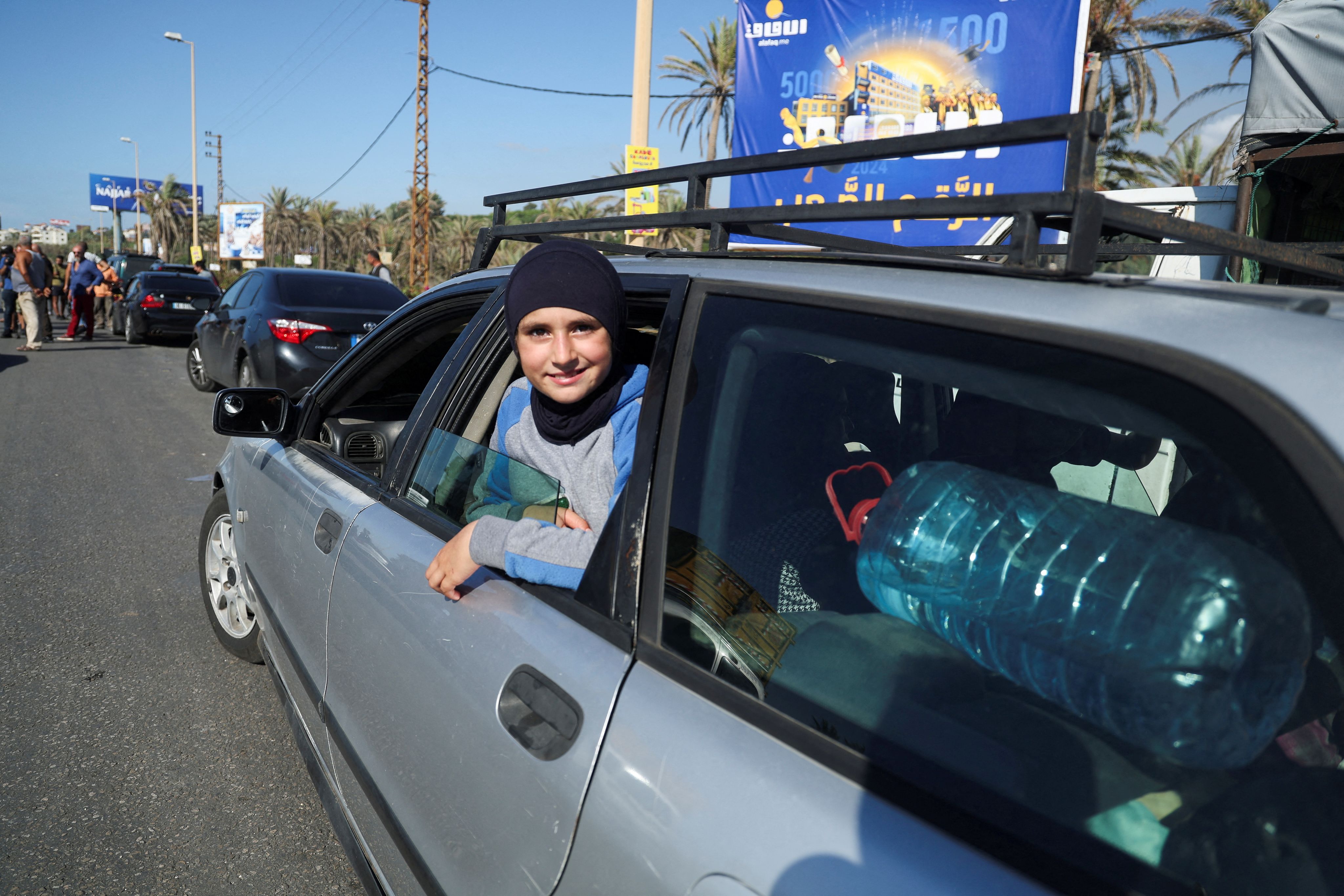 Families flee southern Lebanon towards the north in search of safety amid Israeli bombing on September 23. Reuters