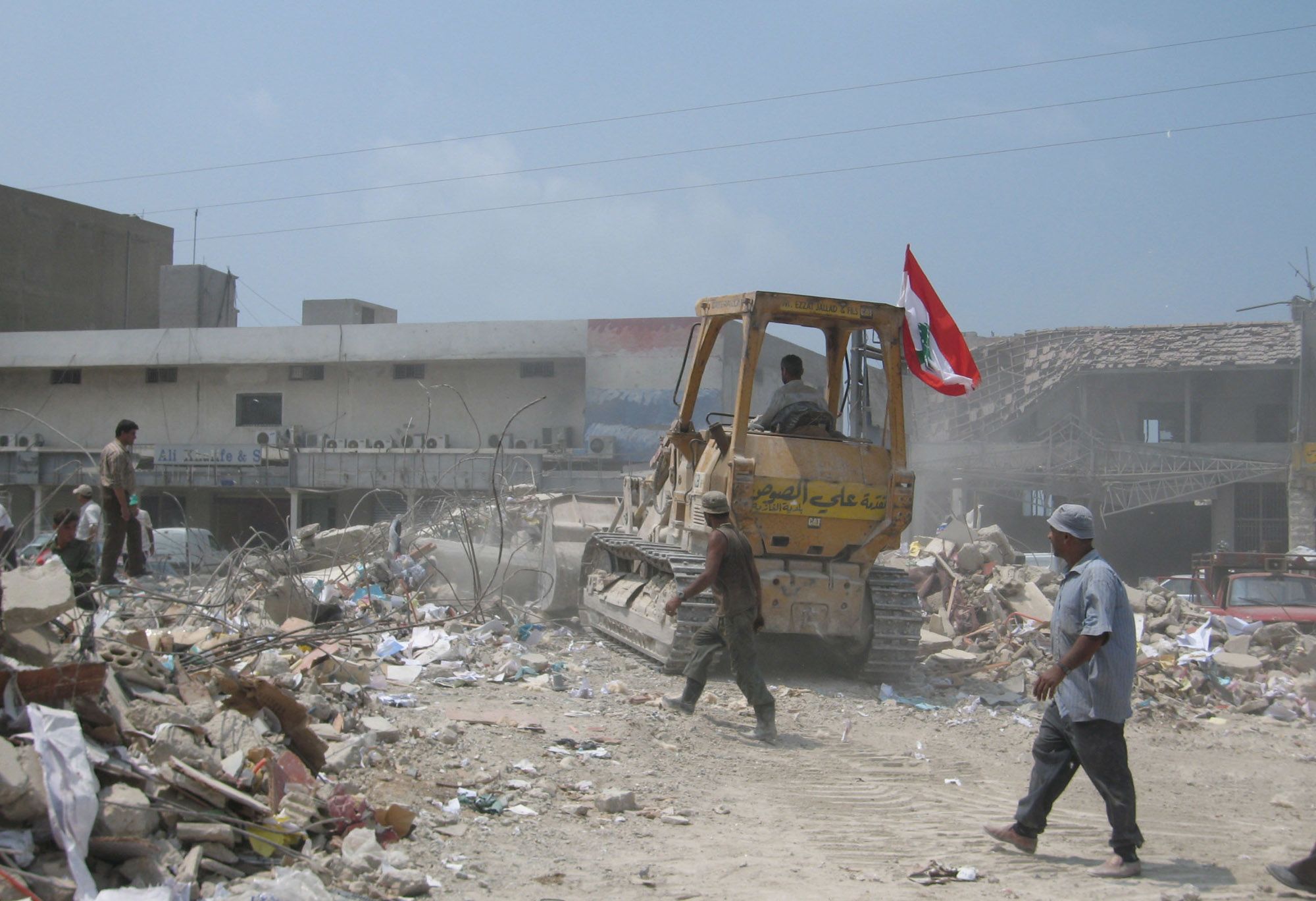 Hezbollah workers clear the rubble from the site of an Israeli air strike near Sidon following the 2006 war. Getty Images