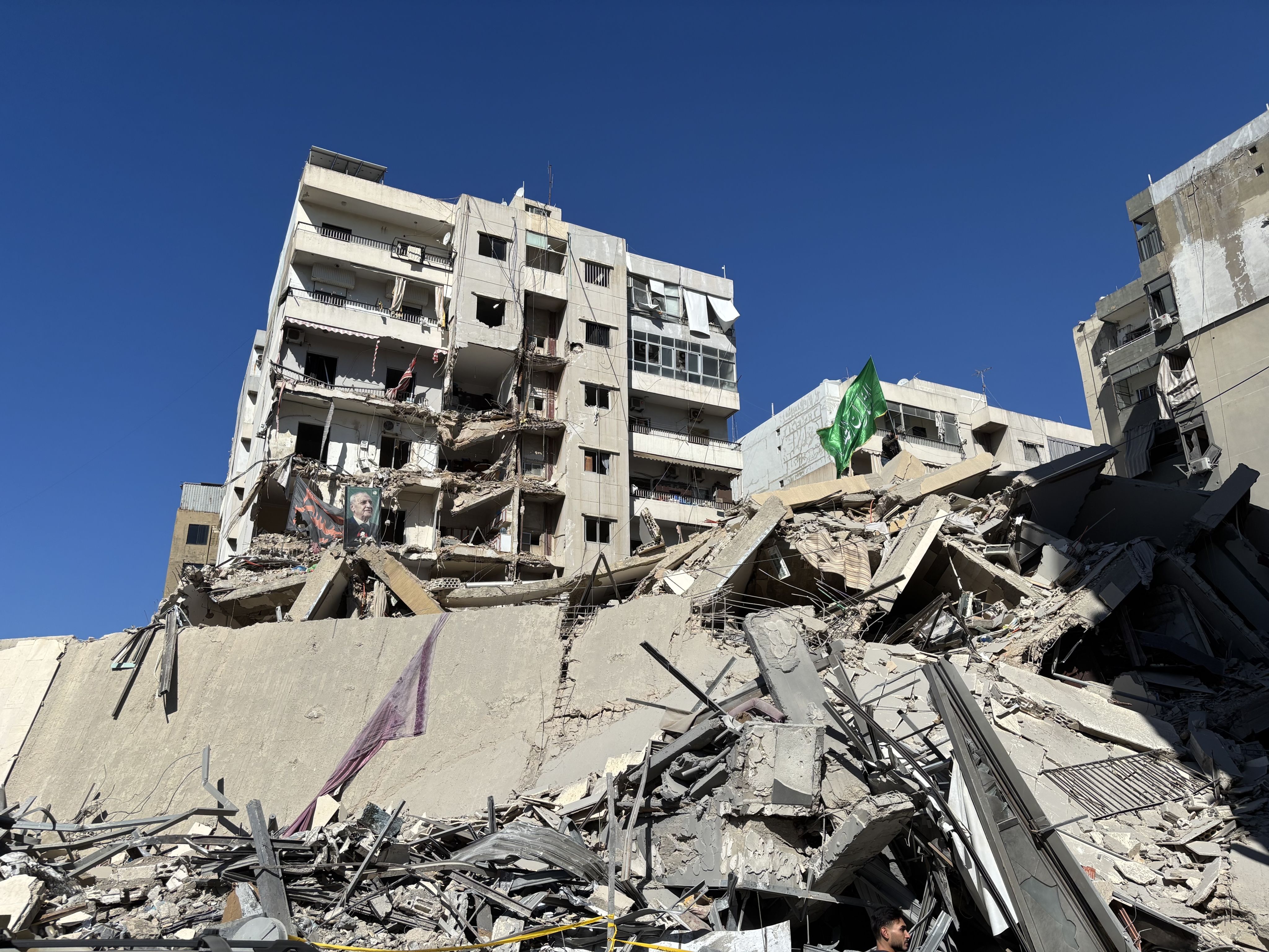 The remains of a building targetted by an Israeli air strike in the Haret Hreik neighbourhood in Beirut's southern suburbs in October 2024. AFP