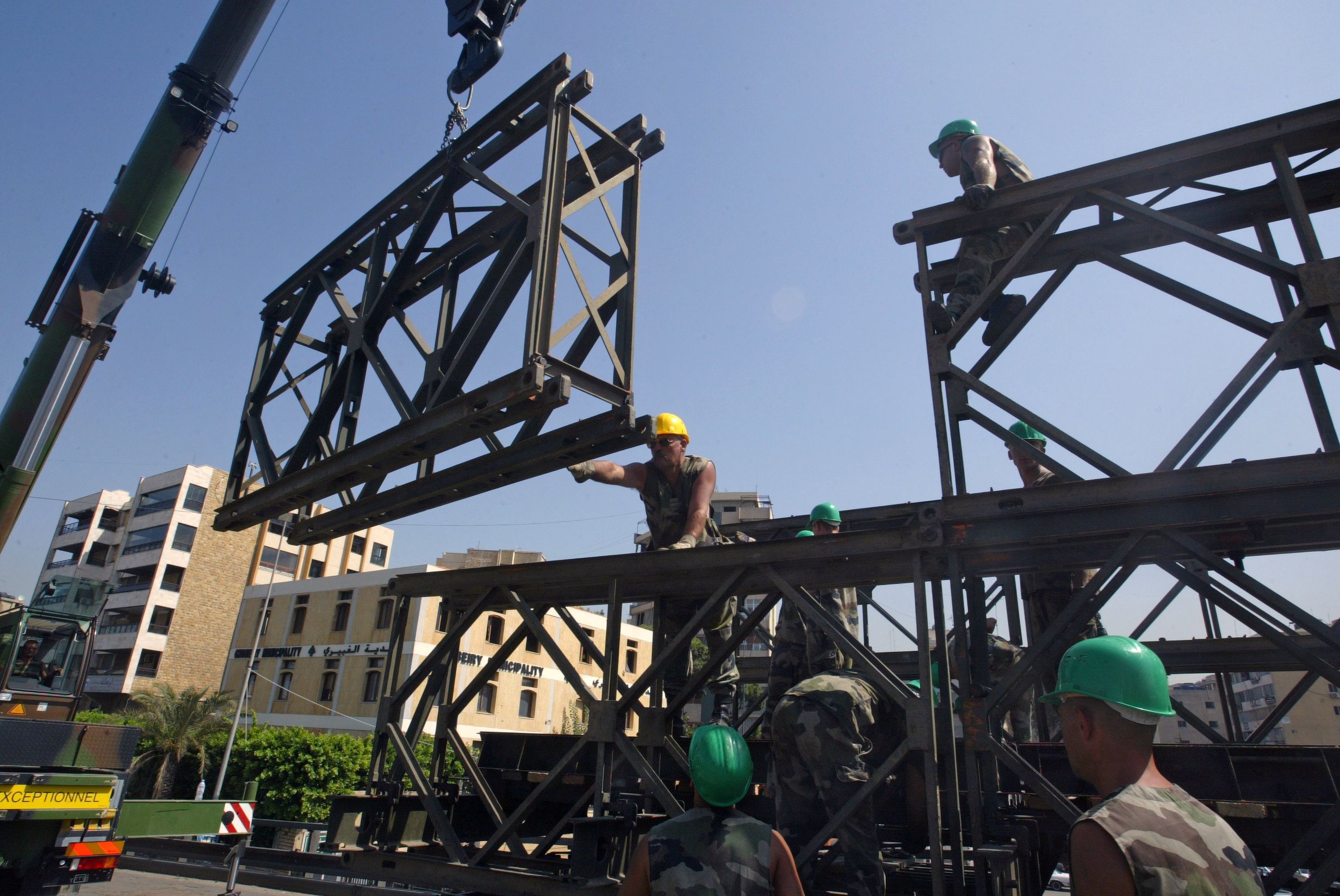 French Foreign Legion soldiers work on the reconstruction of a bridge in Beirut that was damaged during the war between Israel and Hezbollah, in September 2006. Reuters