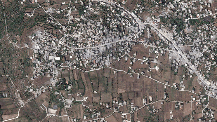 Satellite images taken in October 2023 and again in June 2024 show damage caused by Israeli incursions and air strikes to the Lebanese village of Aita Al Shaab near the border. Photos: 2024 Planet Labs Inc