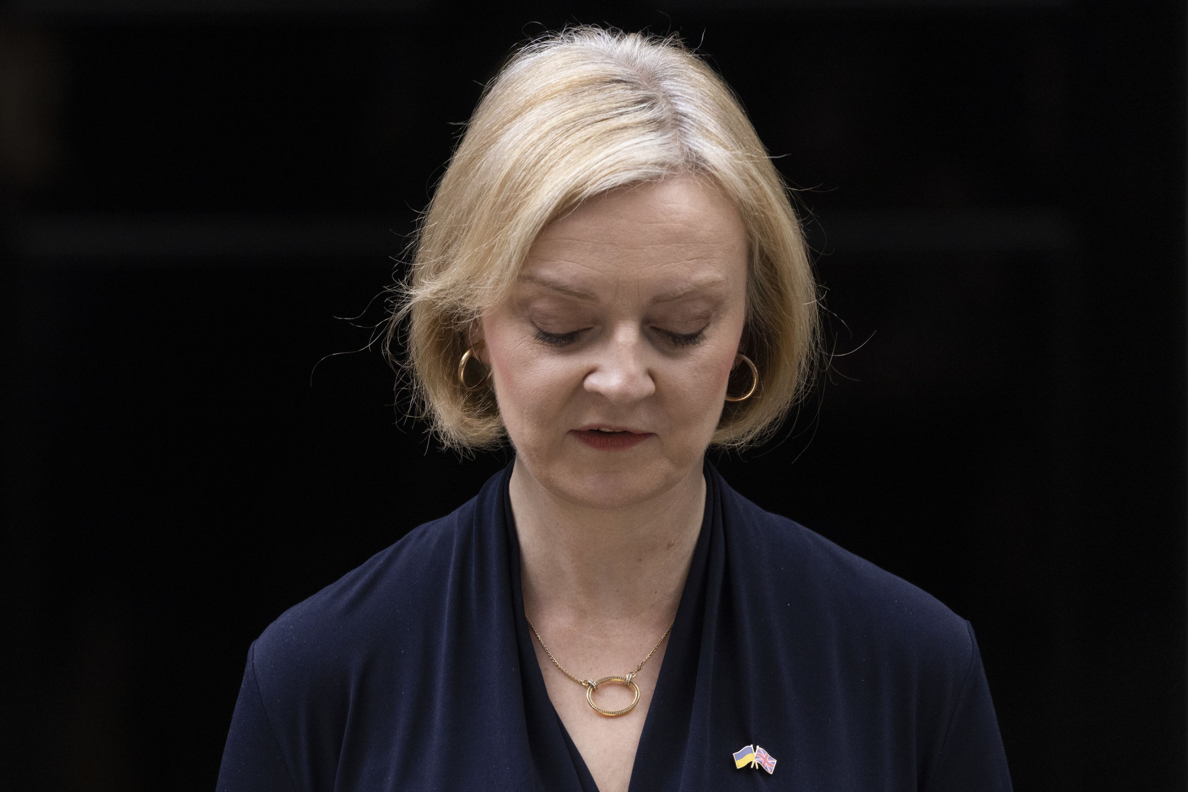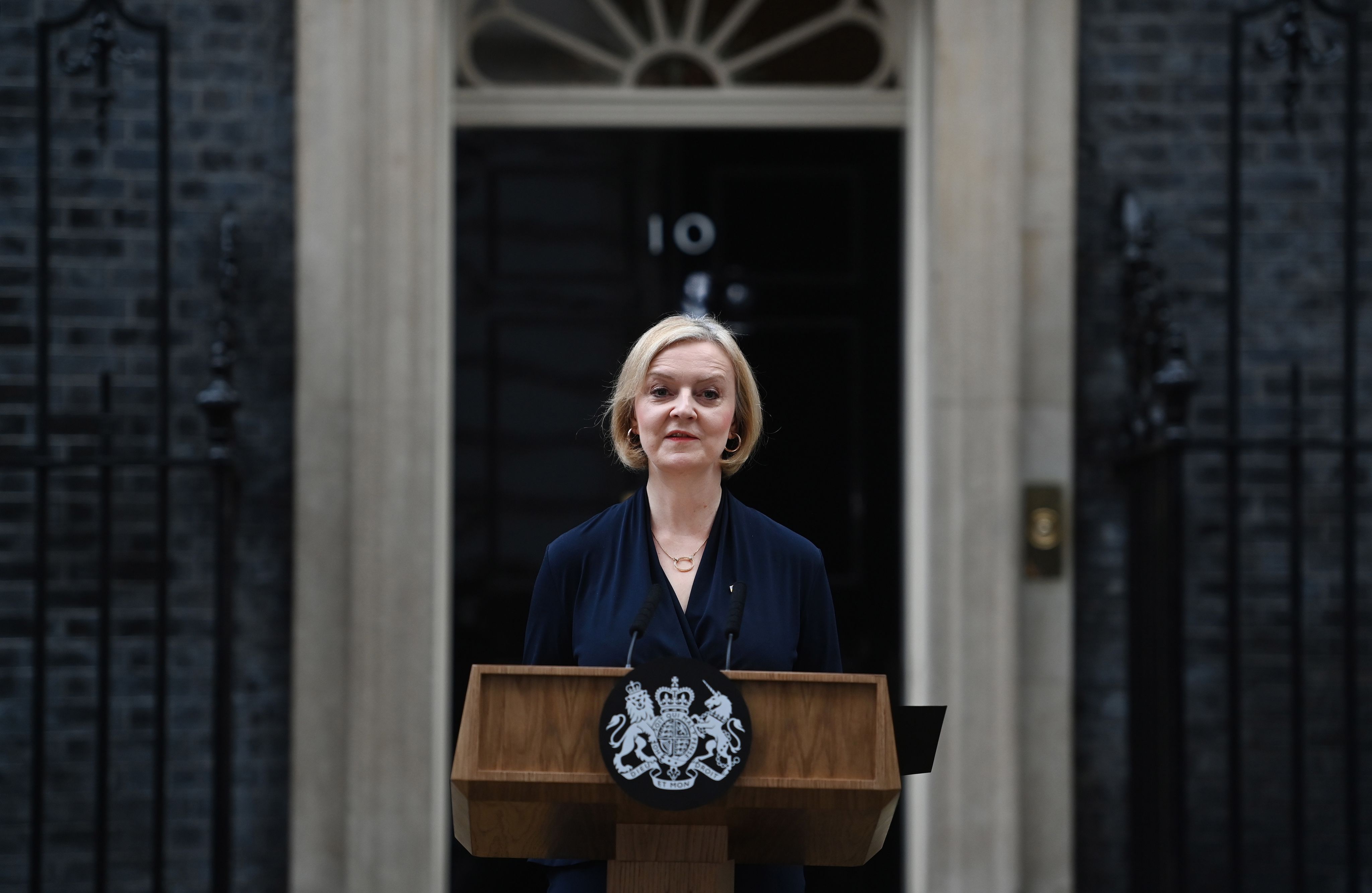 Prime Minister Liz Truss announces her resignation as she addresses the media outside number 10 at Downing Street on October 20, 2022 in London. Getty