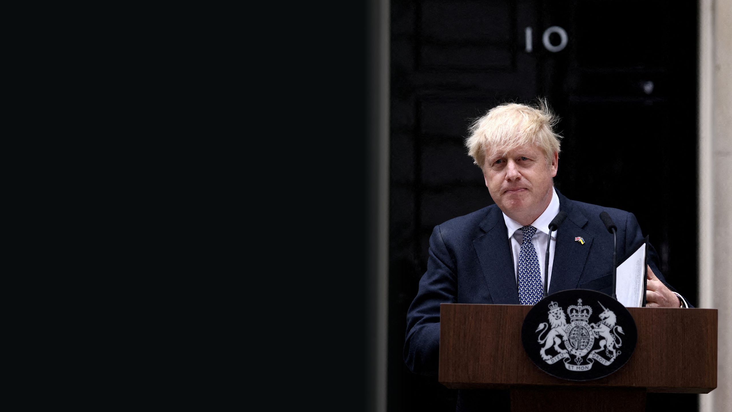 British Prime Minister Boris Johnson makes a statement at Downing Street in London on July 7, 2022. Henry Nicholls / Reuters