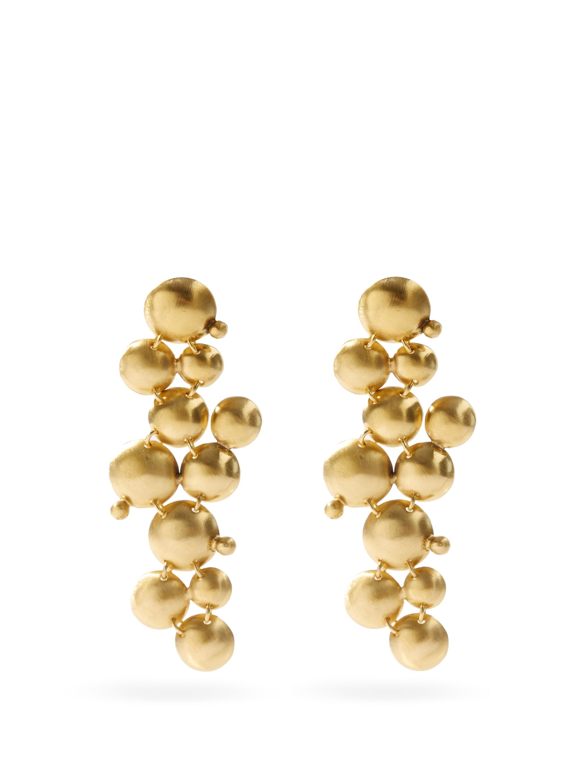 Greek designer Katerina Makriyianni looks to the world around her for inspiration and these gold-plated earrings serve up an interplanetary treat.