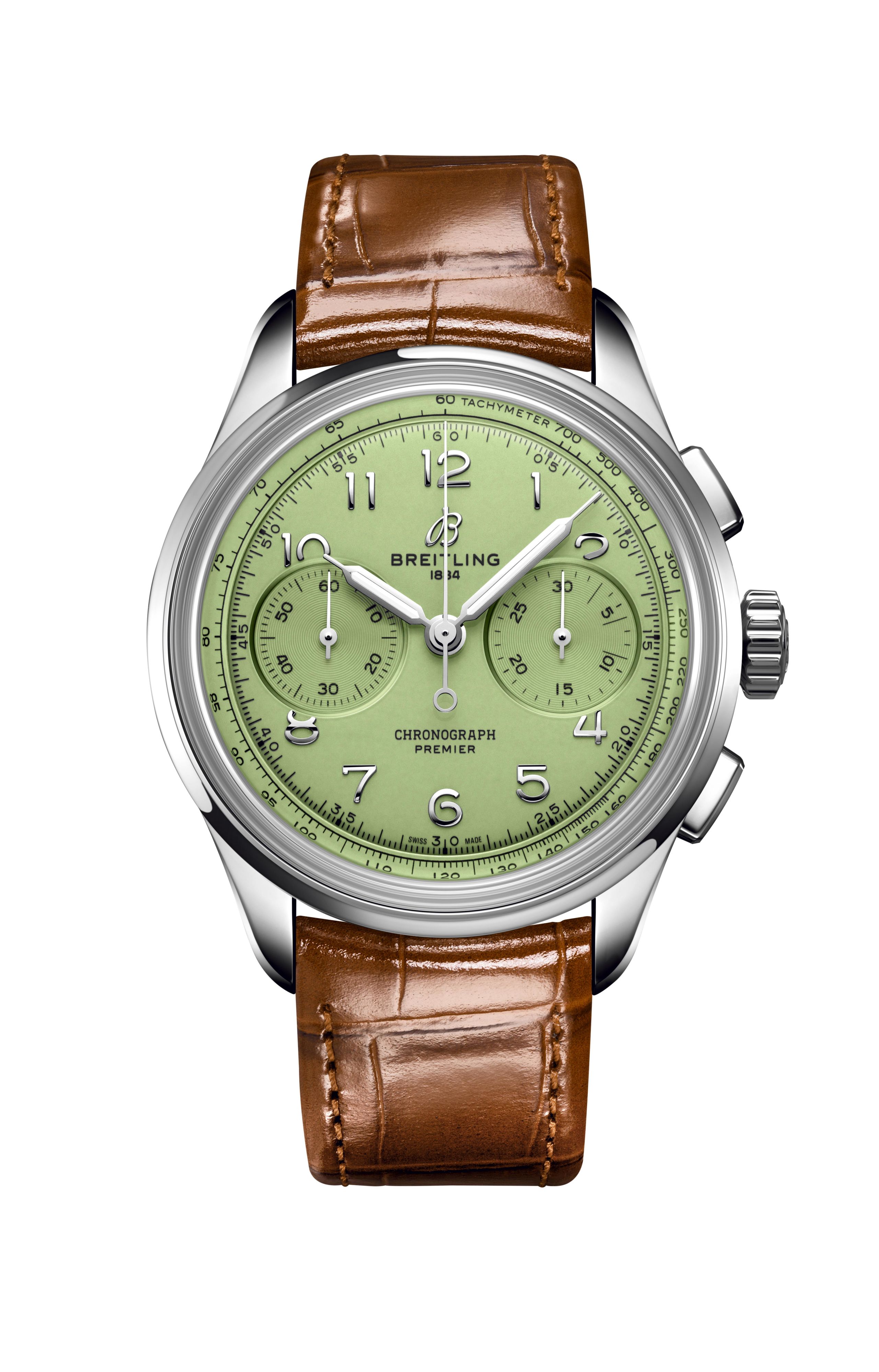 Ex-IWC chief executive Georges Kern has thrashed his way through Breitling’s previously bloated catalogue, refocusing on the brand’s golden mid-century period. The Premier was a break from the watchmaker’s Second World War duties kitting out RAF cockpits, instead offering chaps on Civvy Street some welcome sartorial respite. The swoonsome new Premier Heritage Chronograph is manually wound, like its 1940s predecessors, powered by in-house-engineered Caliber B09 mechanics. It’s all about the bonnet topping that engine, though: a pistachio switch-up on the ubiquitous green-dial trend, which provokes instant cravings for gelato.