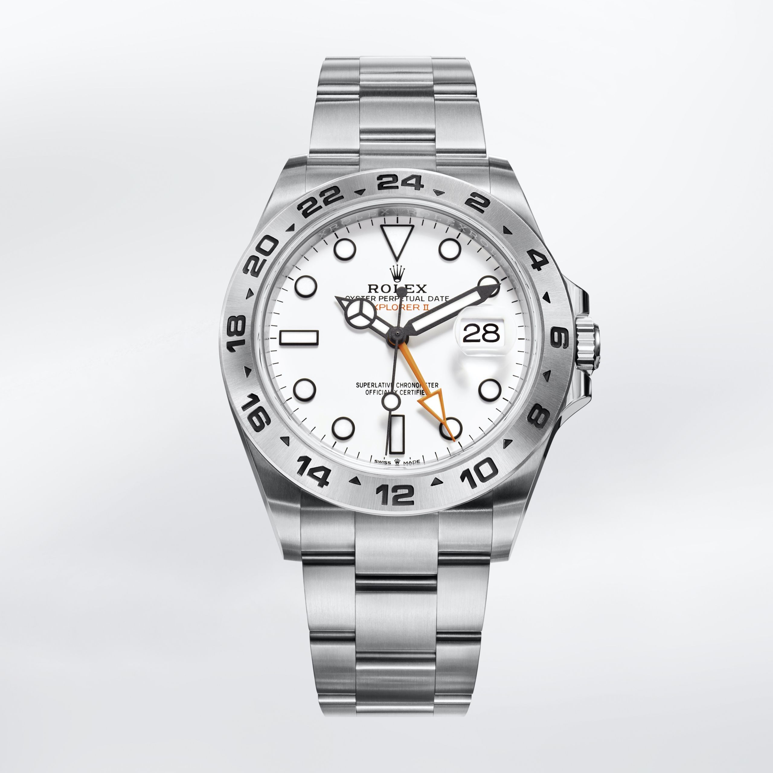 The choice of alpinists since 1971, the new-generation Explorer II gets a 50th-birthday spruce-up. It’s equipped with a calibre 3285, incorporating all the bells and whistles that keep Rolex ahead of the rest in “tool watch” reliability: nickel-phosphorous Chronergy escapement and Parachrom hairspring, plus a 70-hour power reserve. Also essential to polar or subterranean explorers is that joyous pop of orange: a 24-hour hand allowing the wearer to clearly distinguish day from night. When you’re in the midst of a six-month winter, in temperatures that render batteries and LCD screens highly fickle, this is a lifesaver.