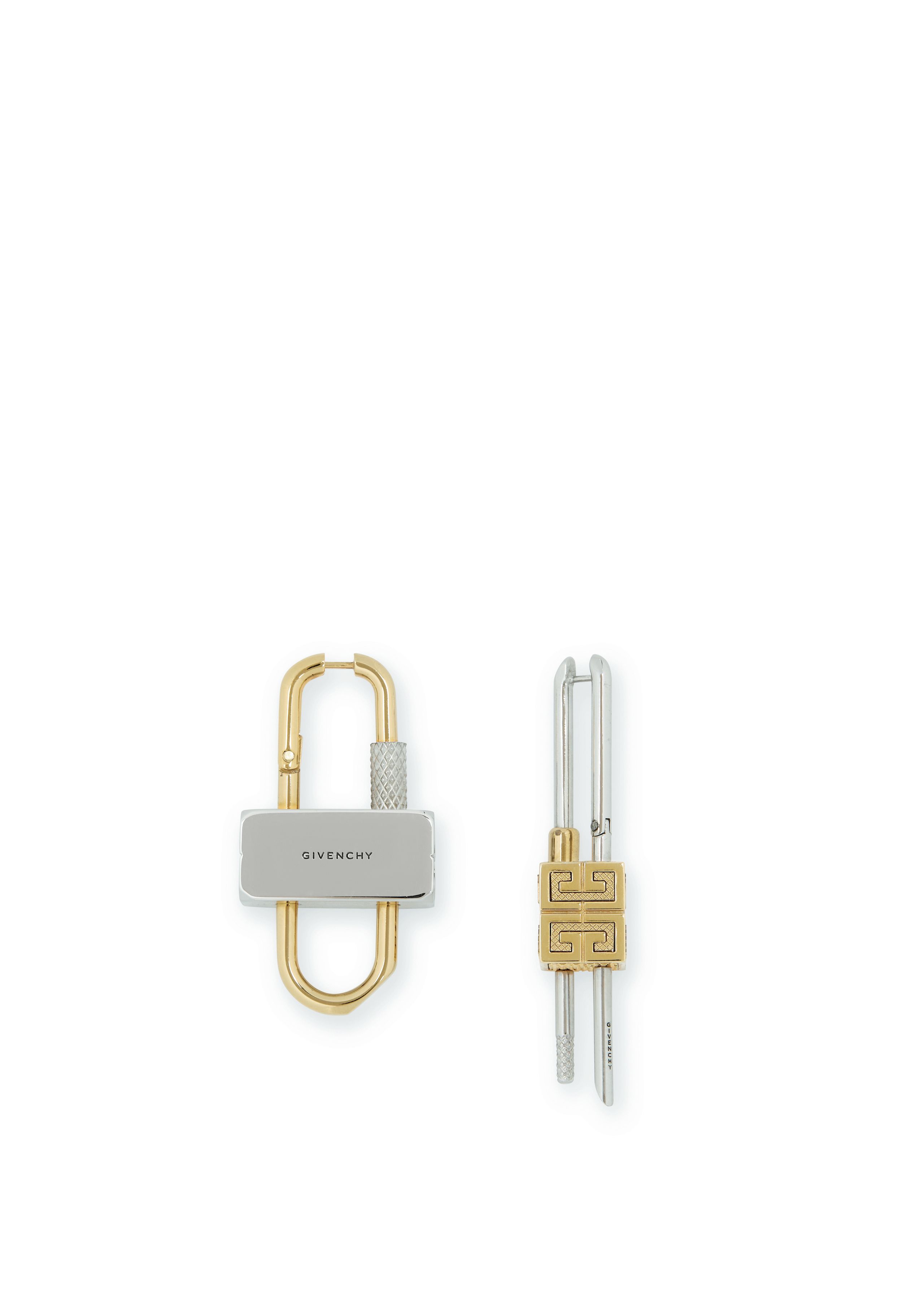 Metallic hardware is taken to a new level with these asymmetrical padlock earrings from Givenchy, which are based on rock climbers’ carabiners.