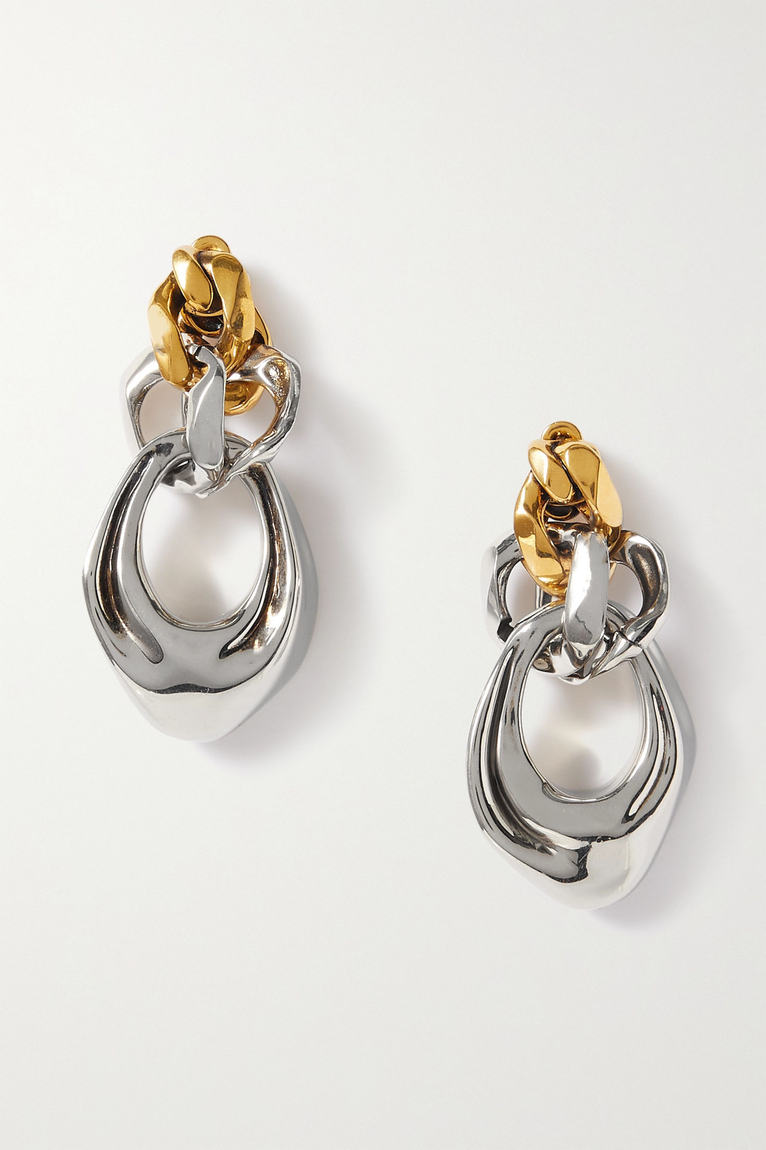 These gold and silver earrings are a striking play on chain links and are sure to toughen up even the girliest of outfits.