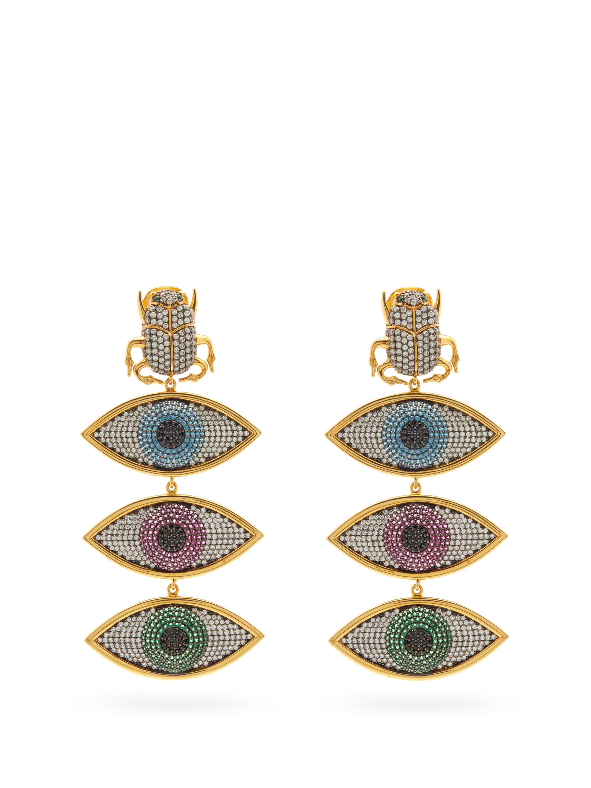 Ward off the evil eye with these handmade triple-charm earrings by Turkish designer Begum Khan.