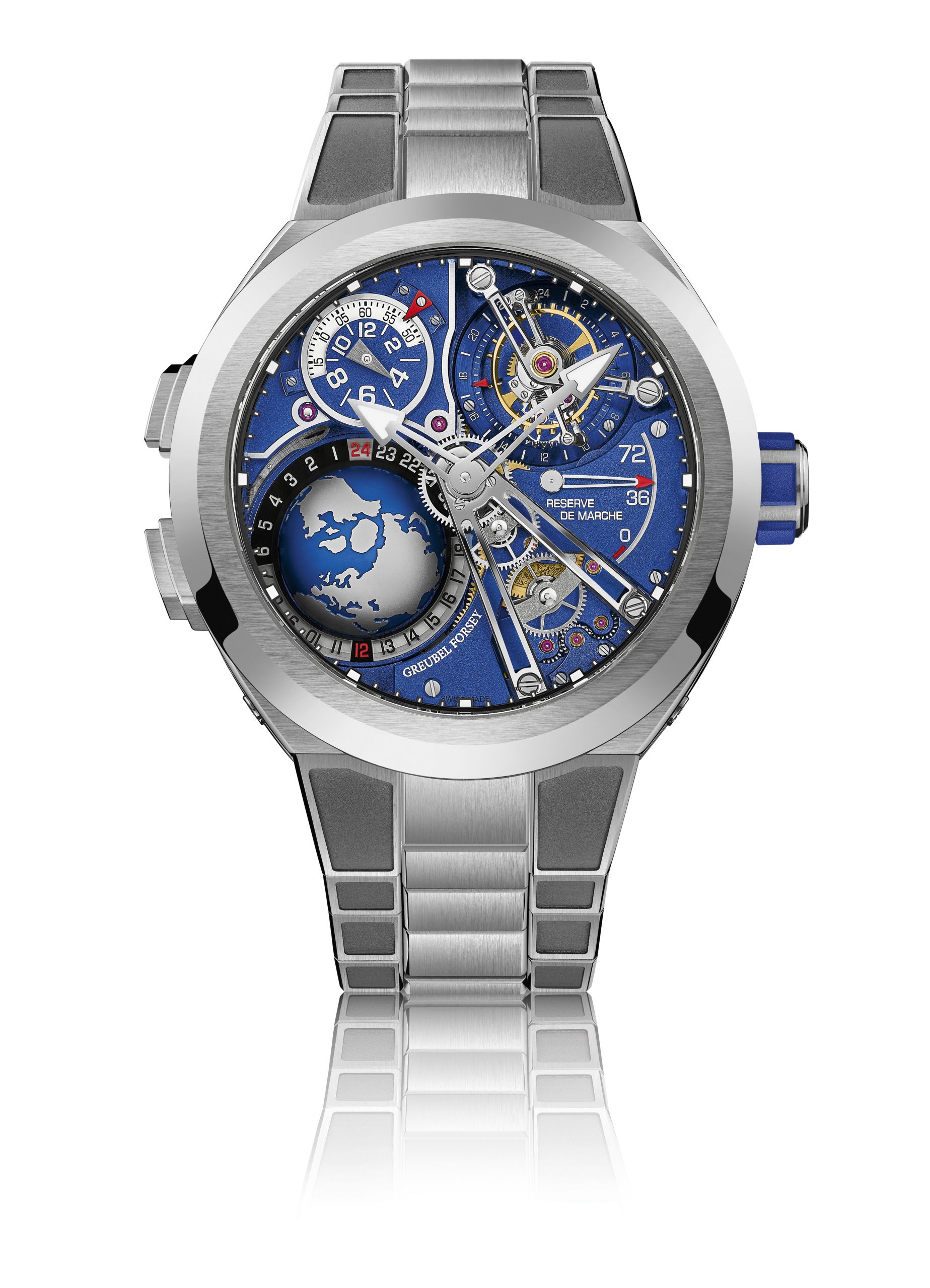When you’re one of only 33 lucky collectors sporting Stephen Forsey and Robert Greubel’s latest micro-mechanical masterpiece, with a fresh $500,000 hole in your bank balance, the notion of actual sport will be far from your mind. But in this rarefied world, “sport” is more of a look than a pursuit, and those clever chaps have knocked it out of the park, streamlining their aerobatically inclined tourbillon and immersive, world-timer globe display, with their first metal bracelet. Anyone for a game of lacrosse?