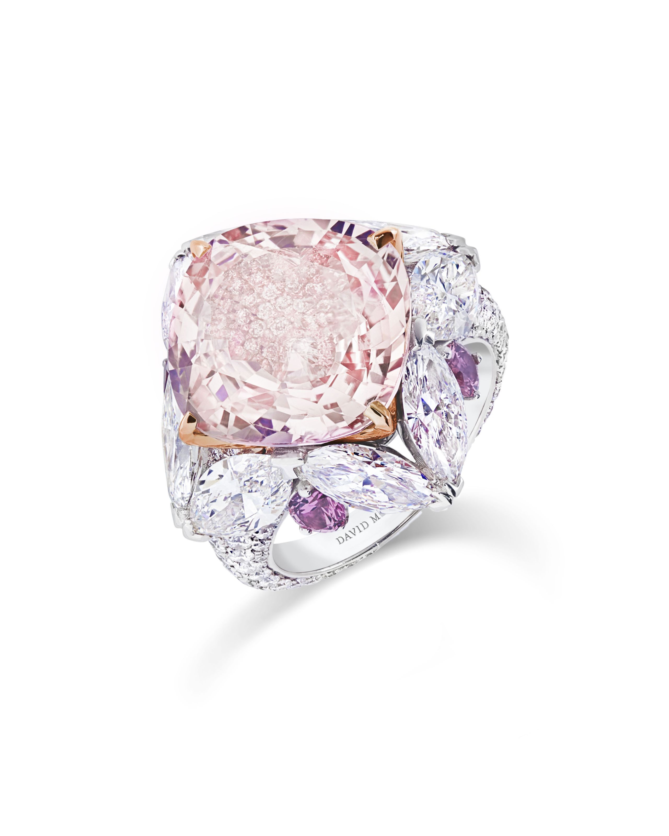 David Morris 8.59 carat Padparadscha sapphire and pink diamond ring. Courtesy David Morris