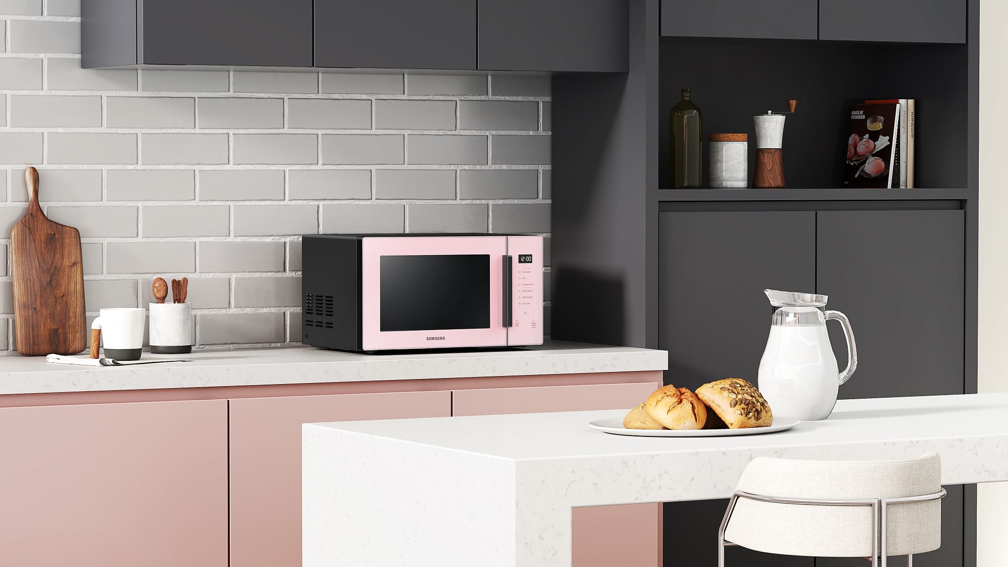 Samsung has extended its bespoke range to include customisable microwaves in three colours – clean pink, pure white and black. Complementing its minimalist design aesthetic, the microwave’s control panel sits behind a full glass touch surface and offers an intuitive user interface. While its exterior will blend into the design of your kitchen, the inside of the microwave is crafted from ceramic enamel, making it antibacterial, hard-wearing, durable, and scratch and rust-resistant.