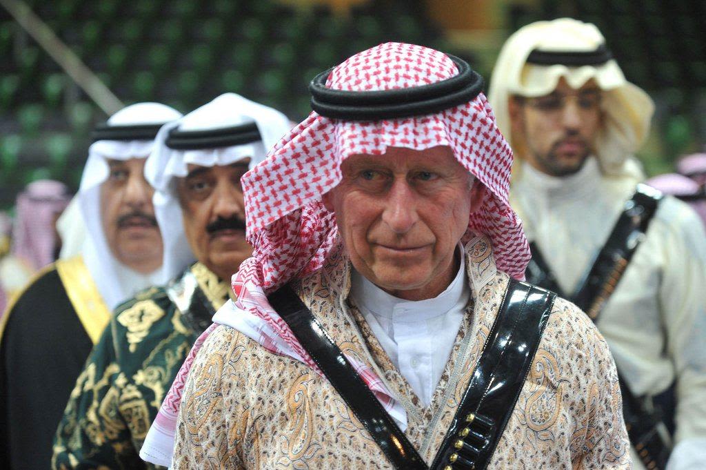Britain’s Prince Charles arrives to participate in the traditional Saudi dance. Photo: Fayez Nureldine / Pool