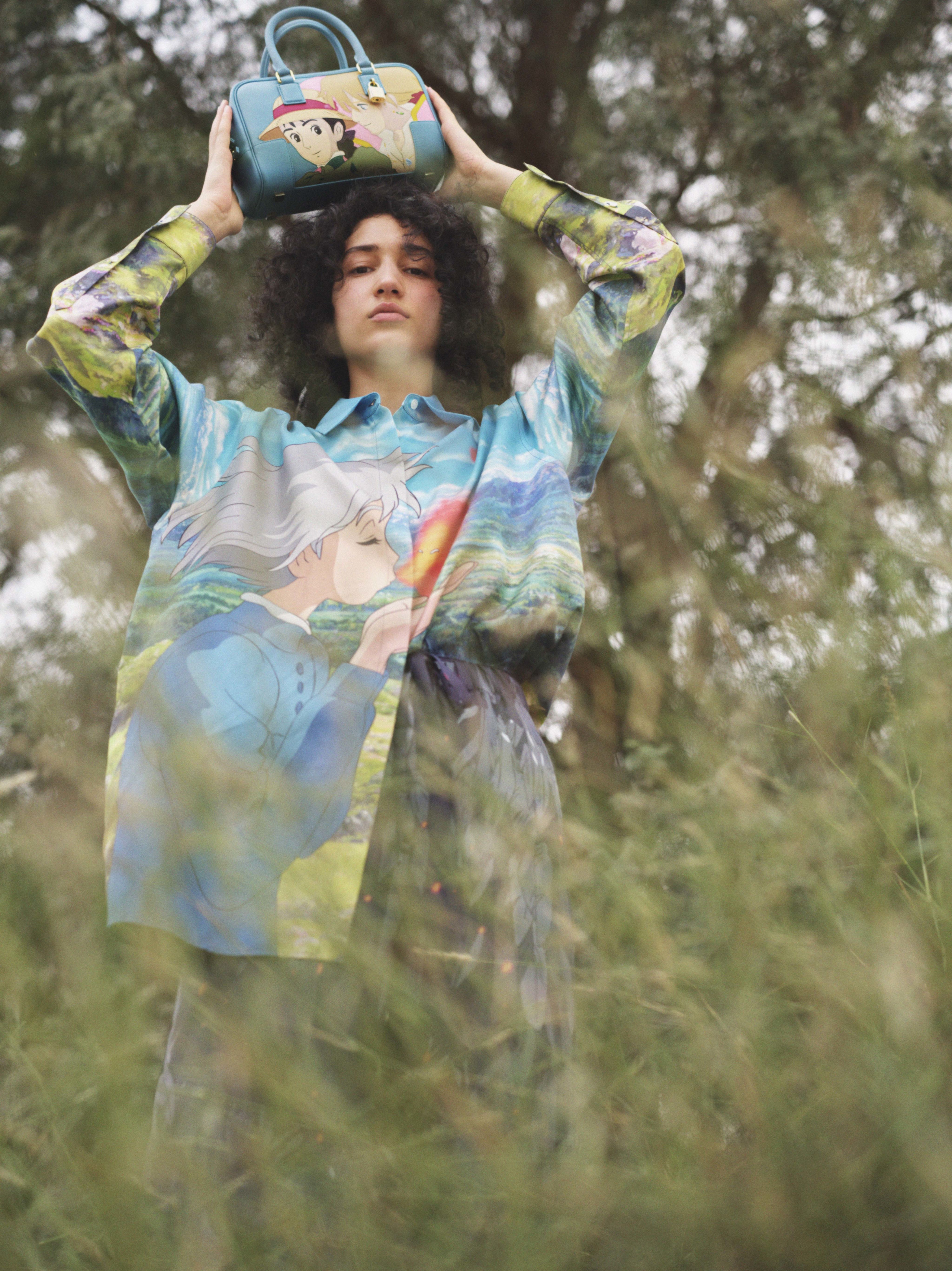 The figures of Japanese director Hayao Miyazaki’s animated films flit across the new Loewe x Howl’s Moving Castle capsule collection, alluding to an alternate reality where craft meets fantasy perspectives