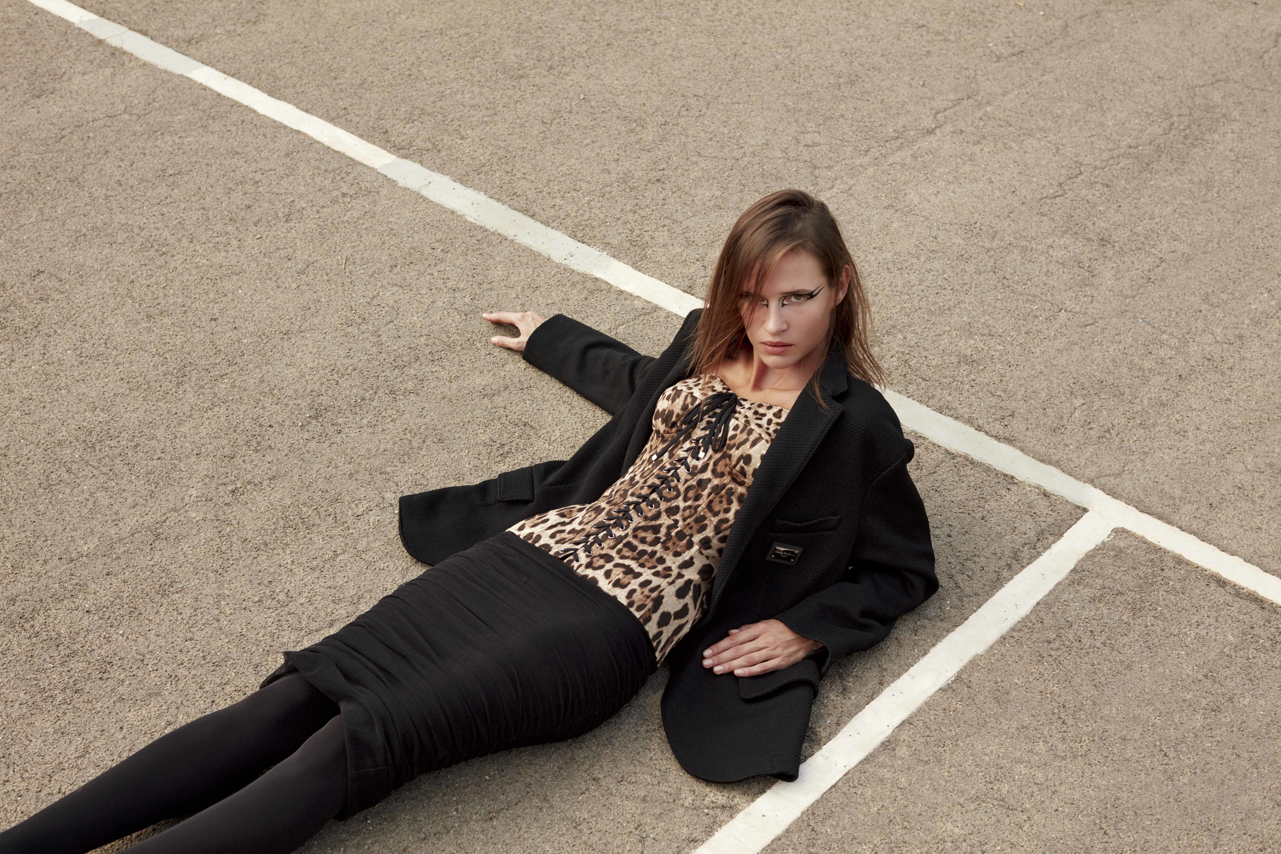 Dress, Dh9,200; corset, Dh6,800; and men’s blazer, Dh10,100, all from Dolce & Gabbana