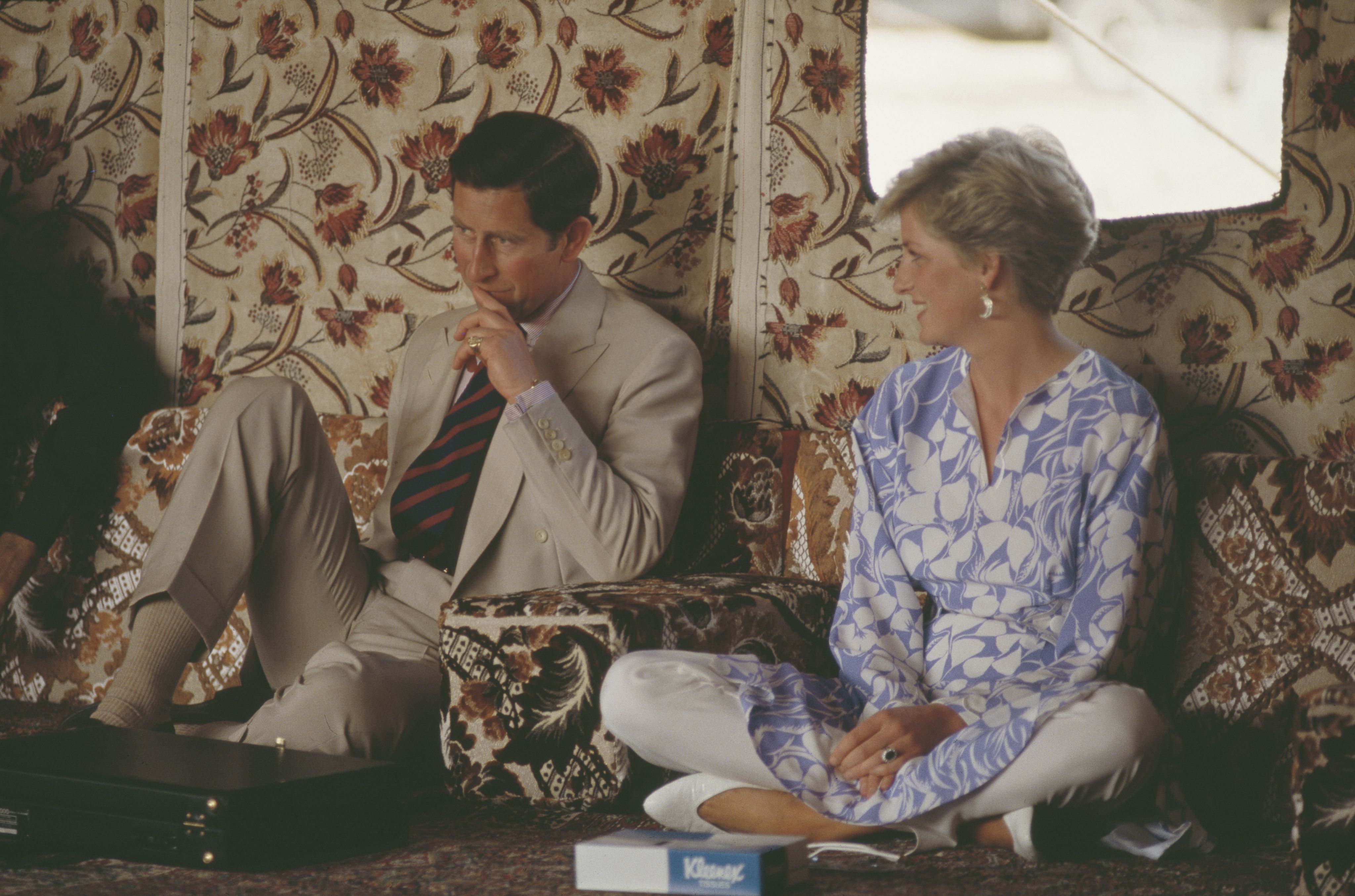 Princes Charles and Diana, Princess of Wales attend a picnic in the desert near Riyadh, Saudi Arabia, November 1986. Photo: Getty Images