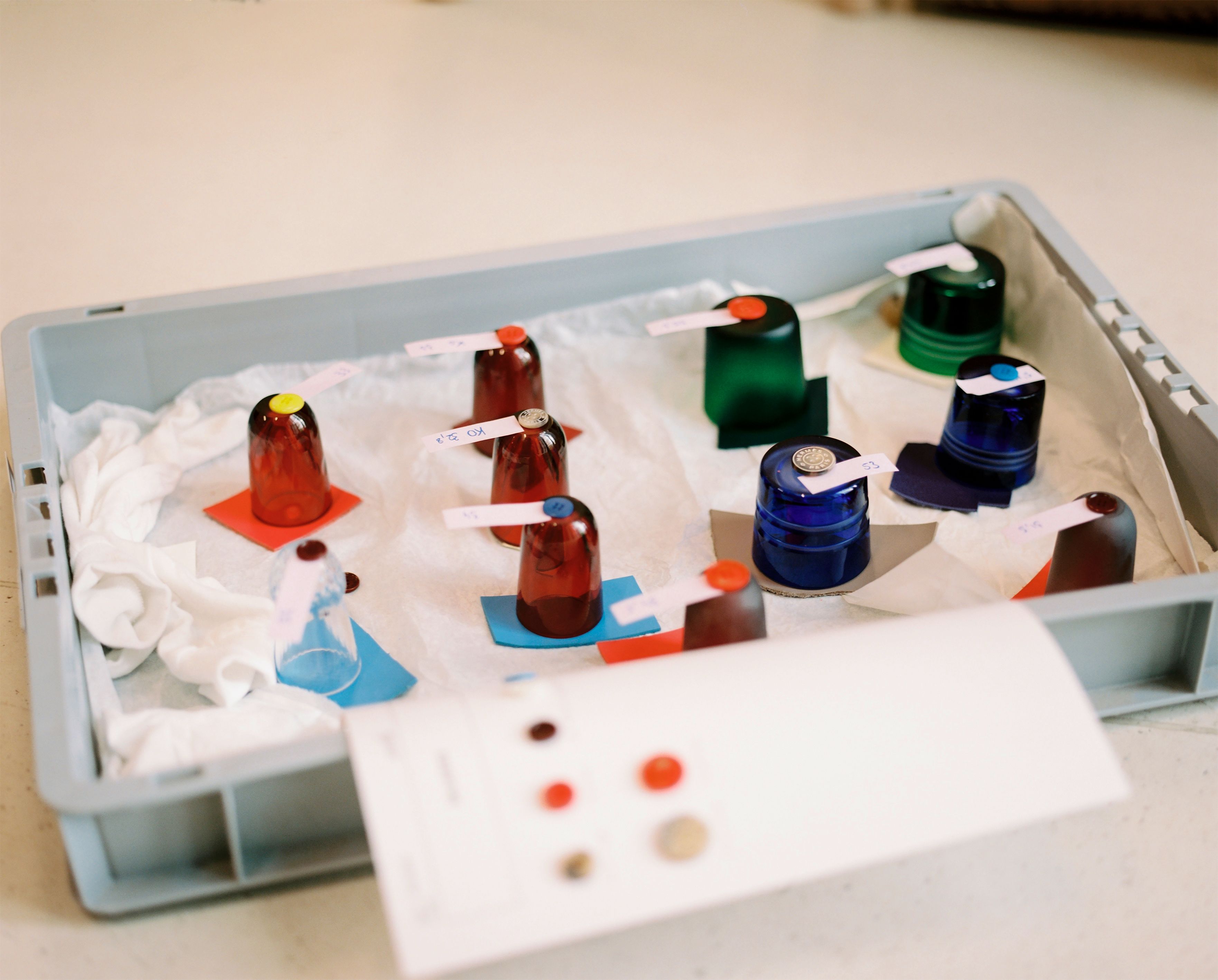 Clay bottles topped with crystal stoppers by Saint-Louis. Photo: Hermes