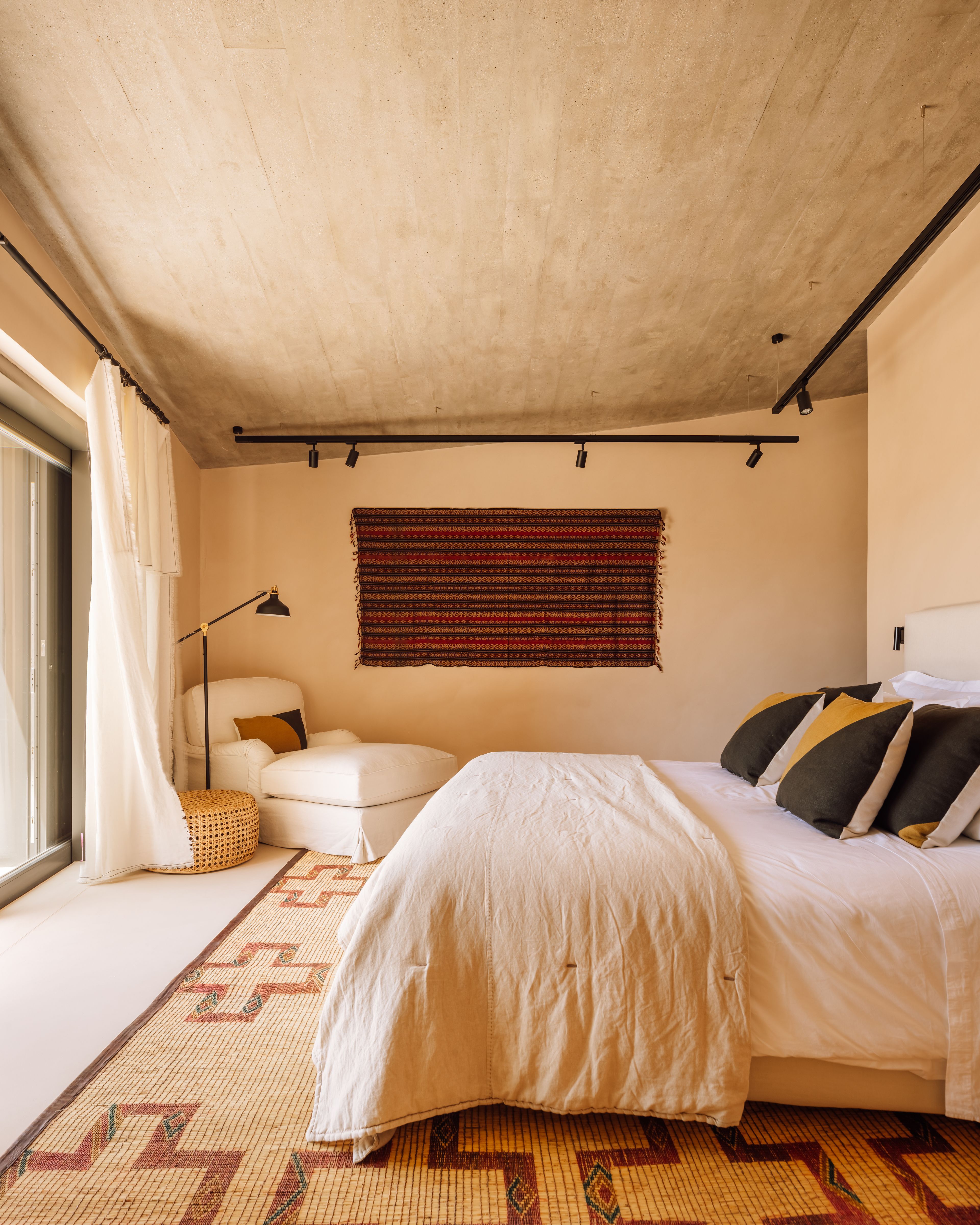 A subtle interplay of textures is introduced via flatweave carpets that double as wall hangings, heavy wooden furniture and the odd statement accessory.