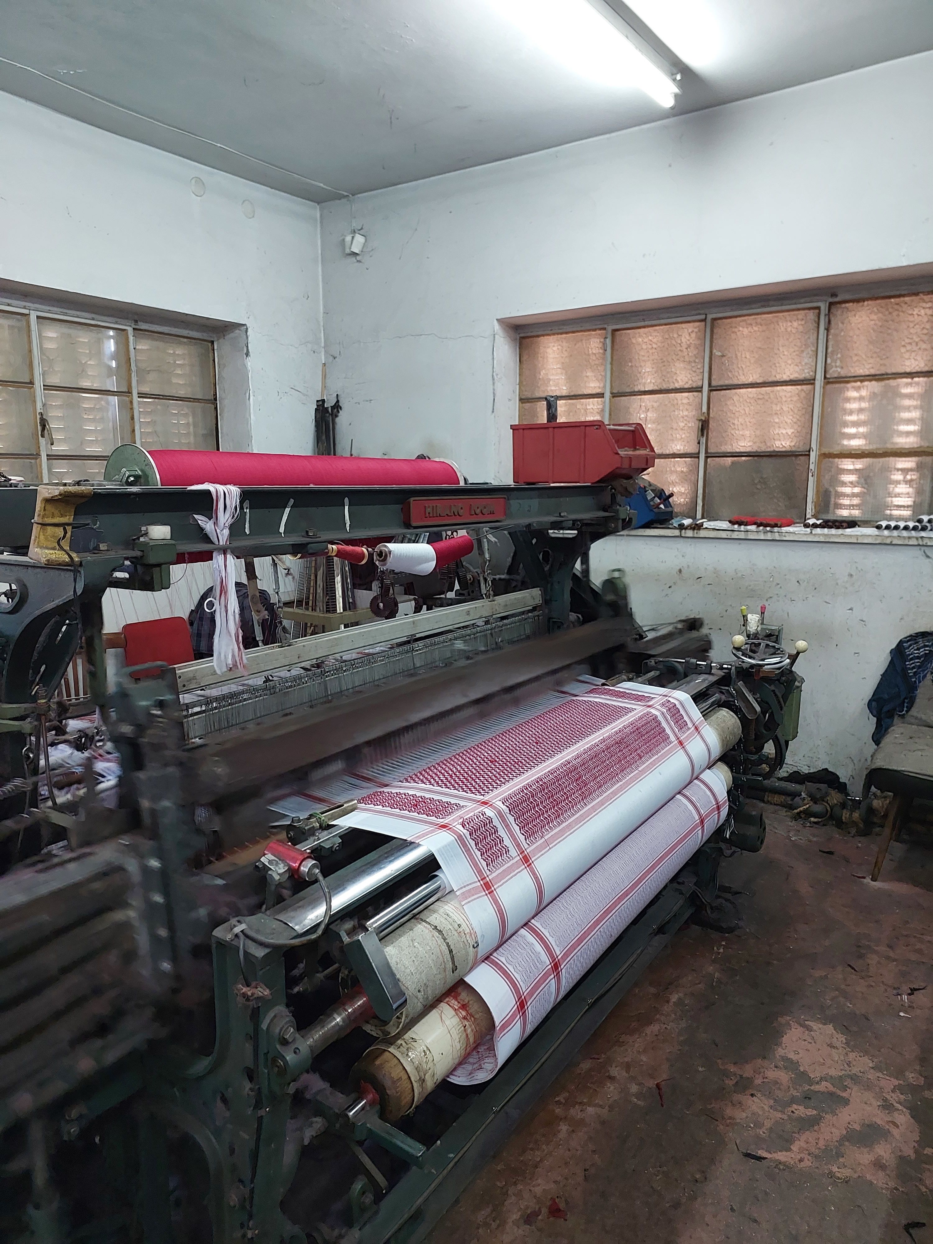 When Hirbawi opened in the 1960s, it was weaving 1,000 scarves a day. Today, half of the factory’s hulking Suzuki looms lie idle and output has fallen dramatically as the market has been flooded with cheap copies of the keffiyeh. When Sarah Maisey visited the site, she was greeted by Abed Hirbawi, son of founder Yasser, who was delighted to have an unannounced visitor.