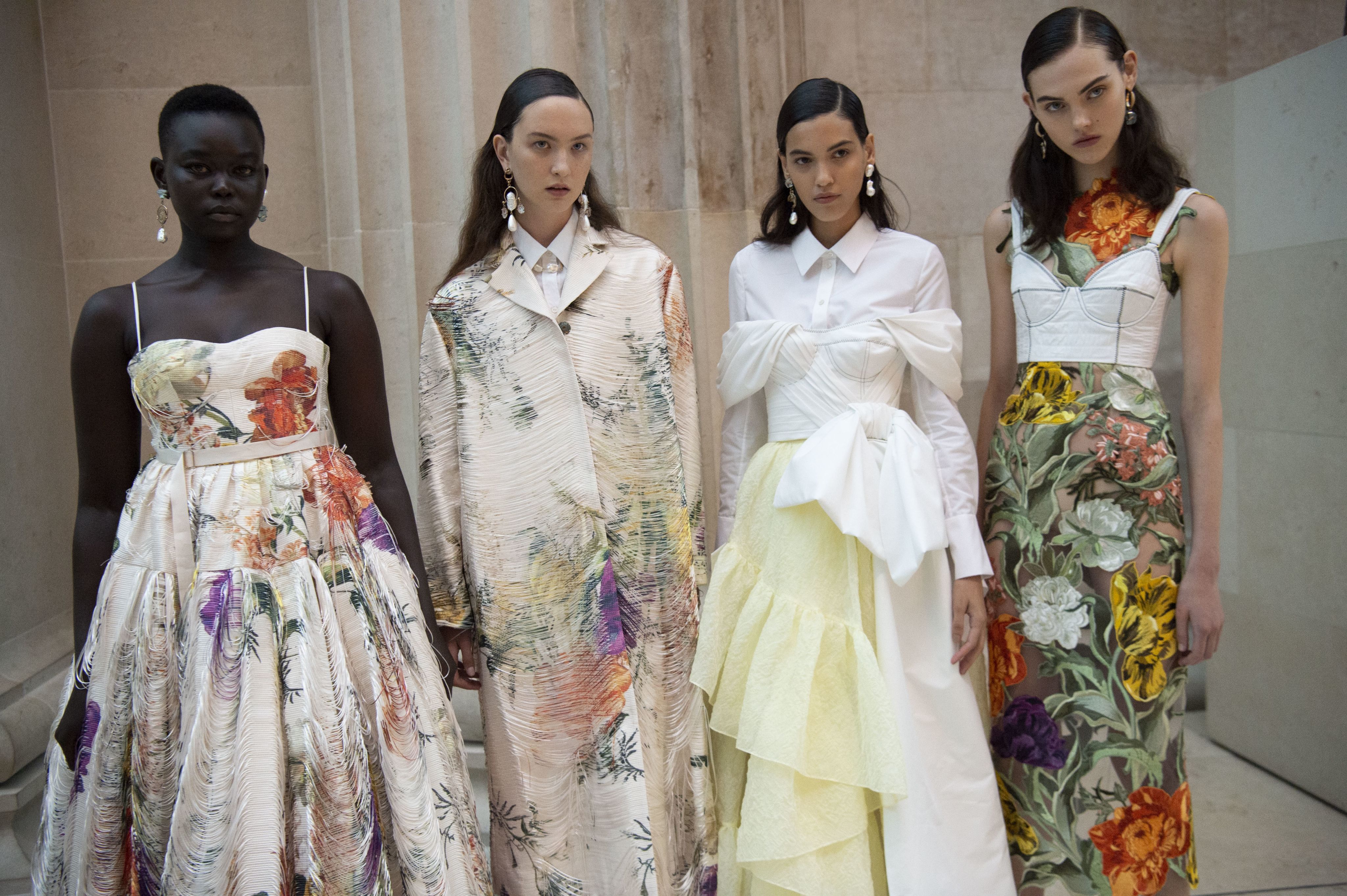 The Spanish house echoes the strict corsetry of a bygone era, with strapless dresses that come with rigid tops and skirts held out with framing.