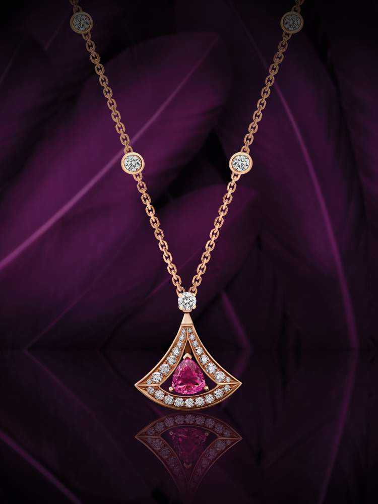 Bulgari Diva’s Dream necklace in pink gold with a pink tourmaline and pavé diamonds