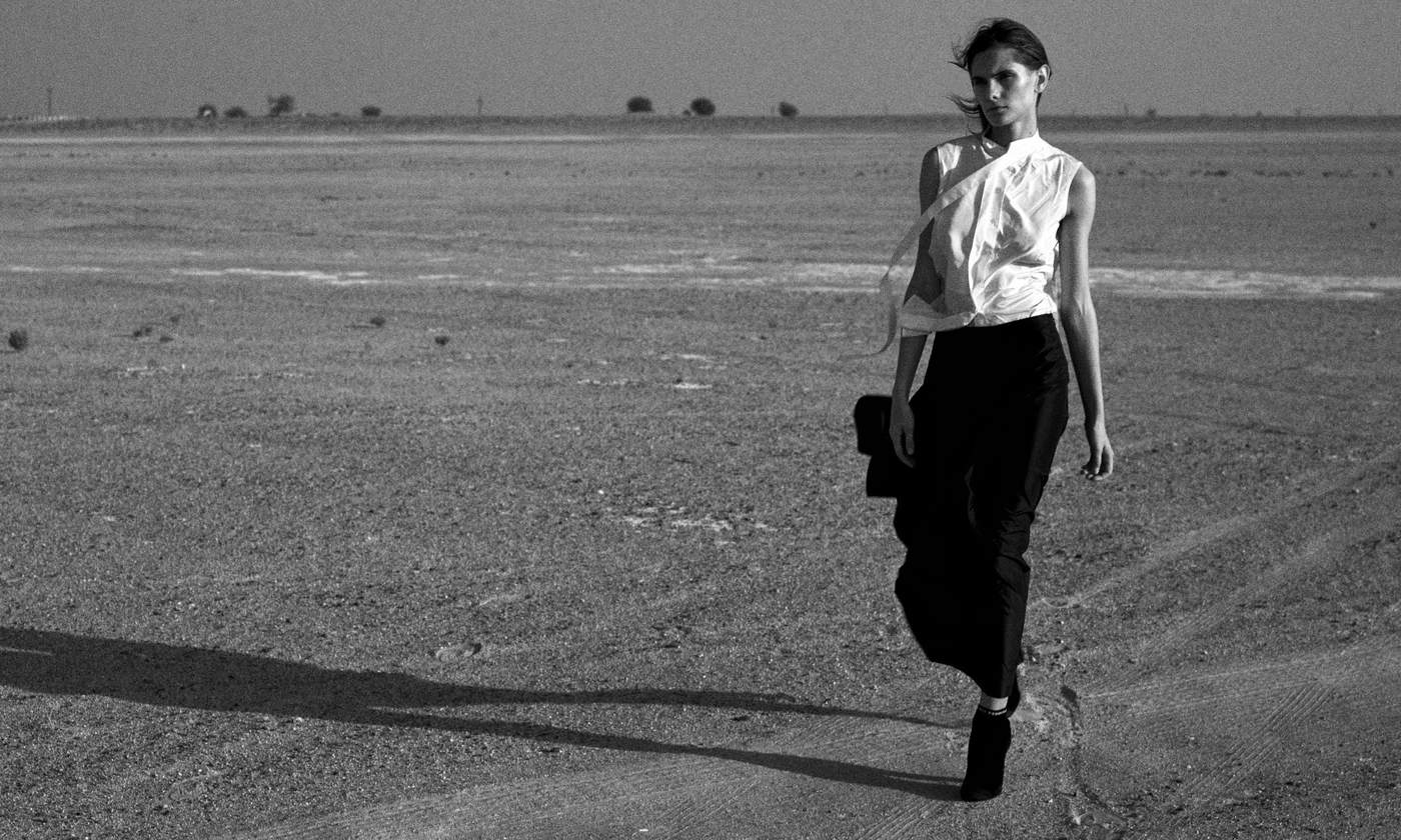 I highlight that this notion of shielding a woman and her body aligns with the purpose of the abaya, and ask the designer whether the traditional Arabian silhouette has ever been a source of inspiration for her. “I don’t think that it was directly, but the idea of sheltering and covering the body is similar,” she tells me. “It’s just my aesthetic, and in this case, I’m very lucky that it resonates with the aesthetic of this region as well.”