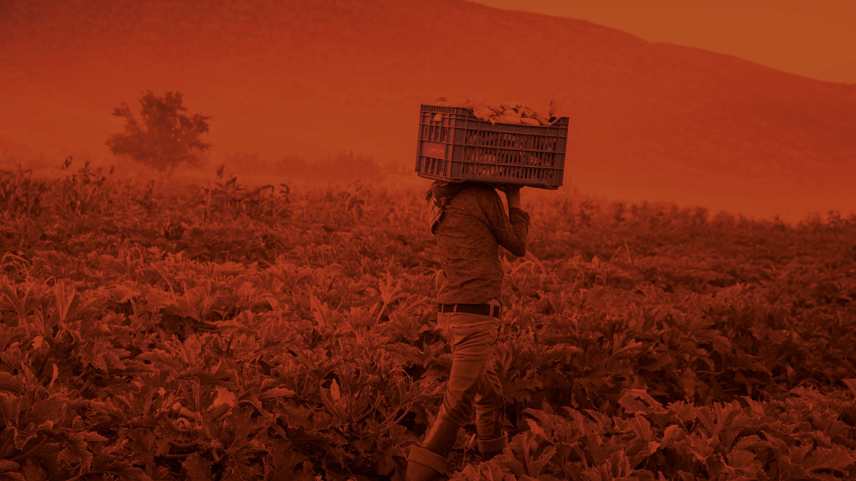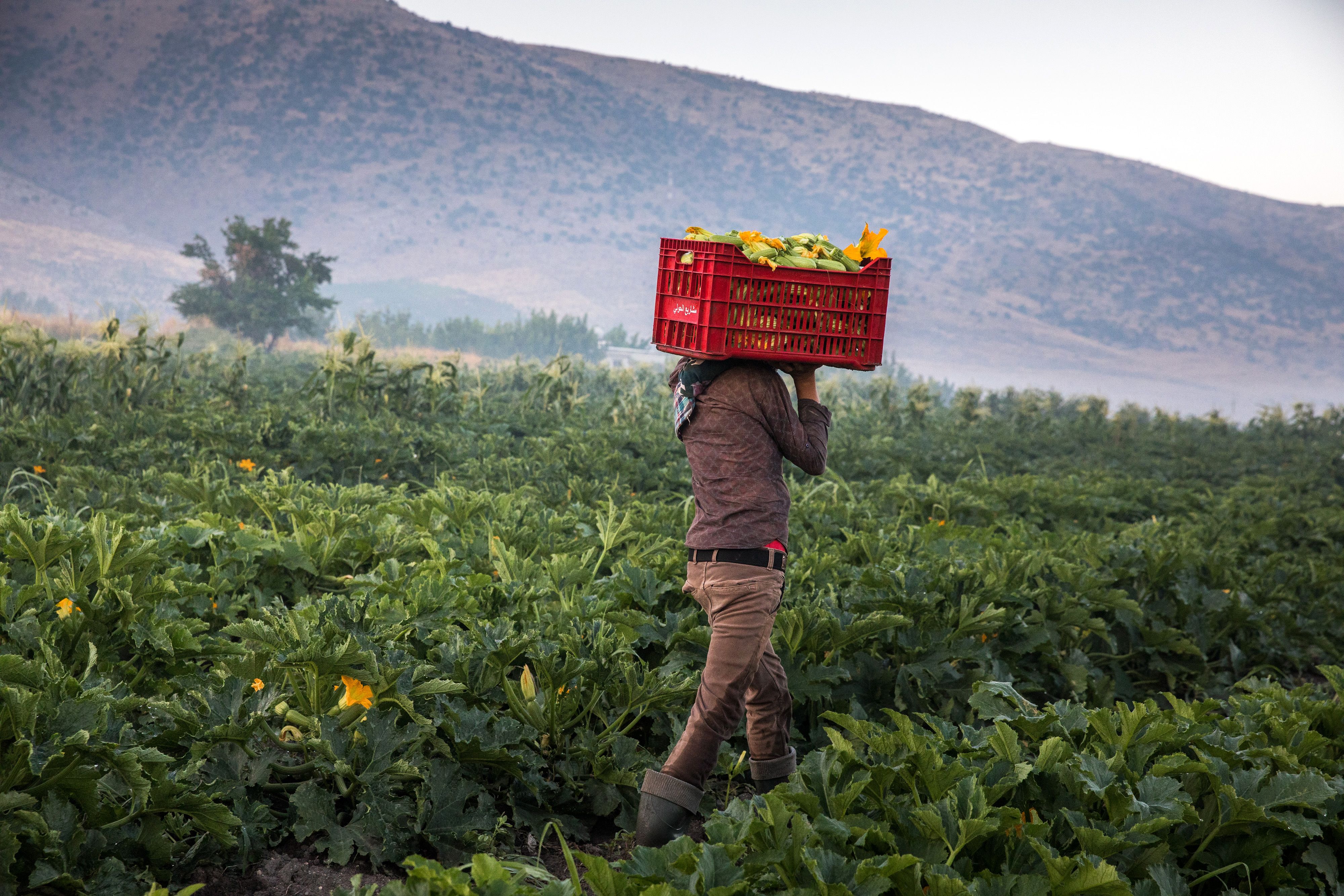 A boy carries a crate of courgettes at a farm in Bekaa Valley, Lebanon in July 2019. Getty Images