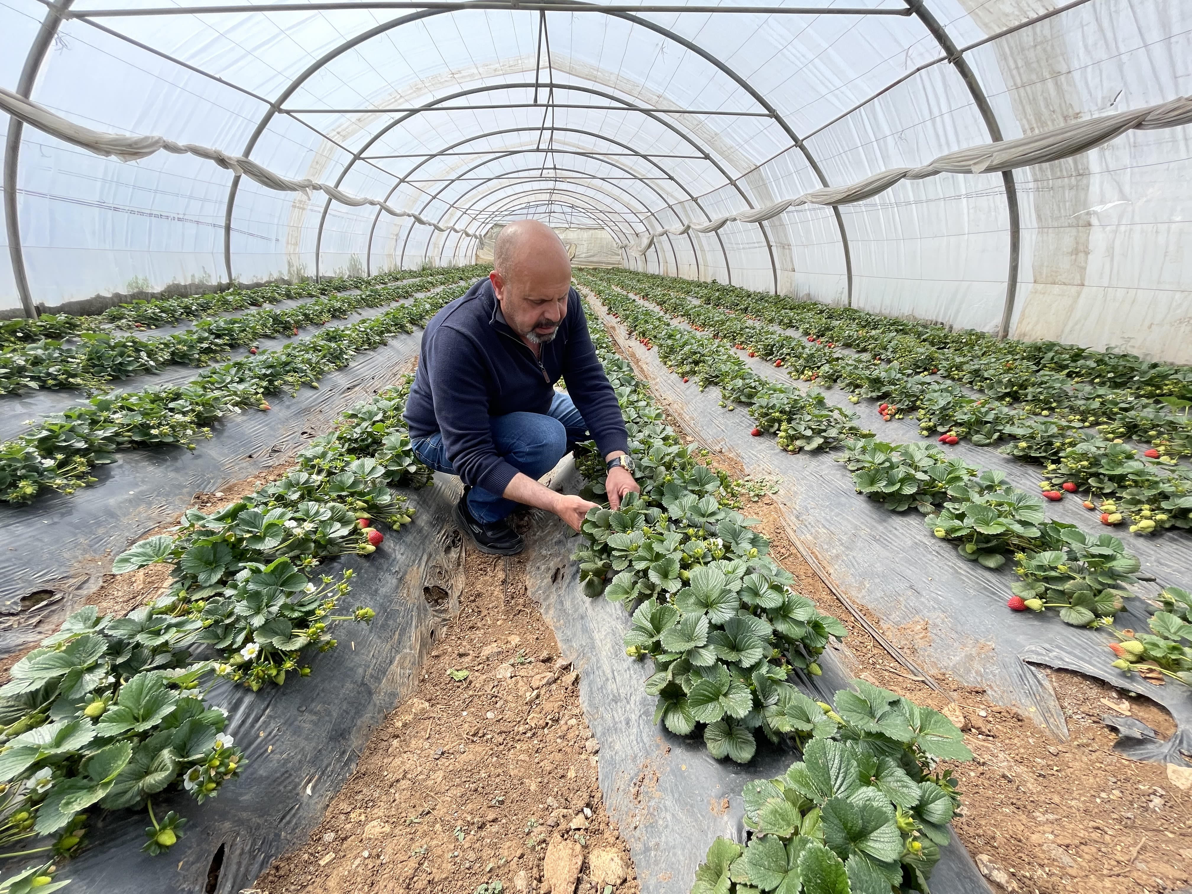 Yacoub Miguel at his strawberry farm in Amman. Khaled Yacoub Oweis / The National