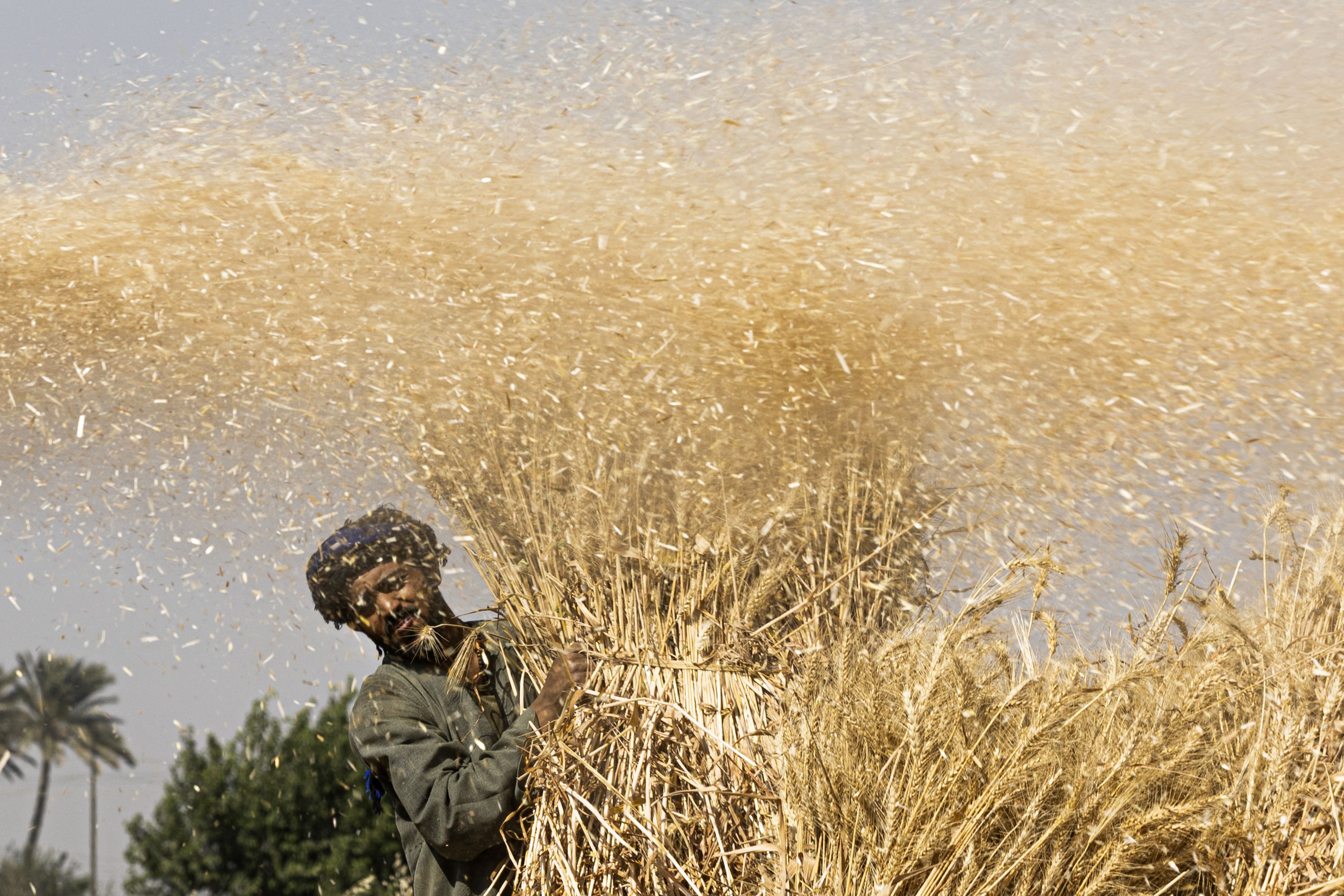 An Egyptian farmer during the wheat harvest in Bamha in May 2022. AFP