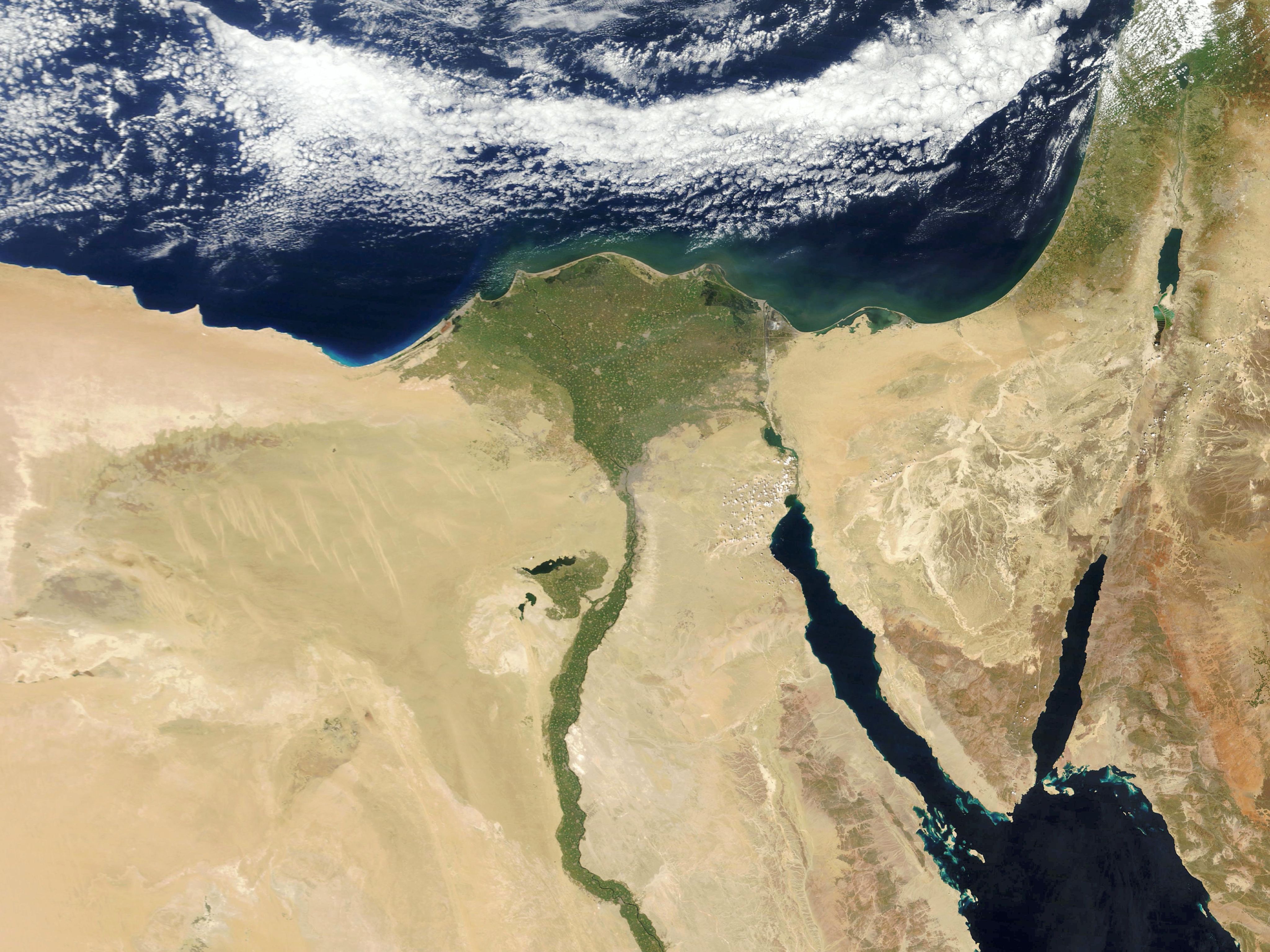 Satellite view of Cairo, Egypt, and the valley of the Nile River in 2011. Getty Images