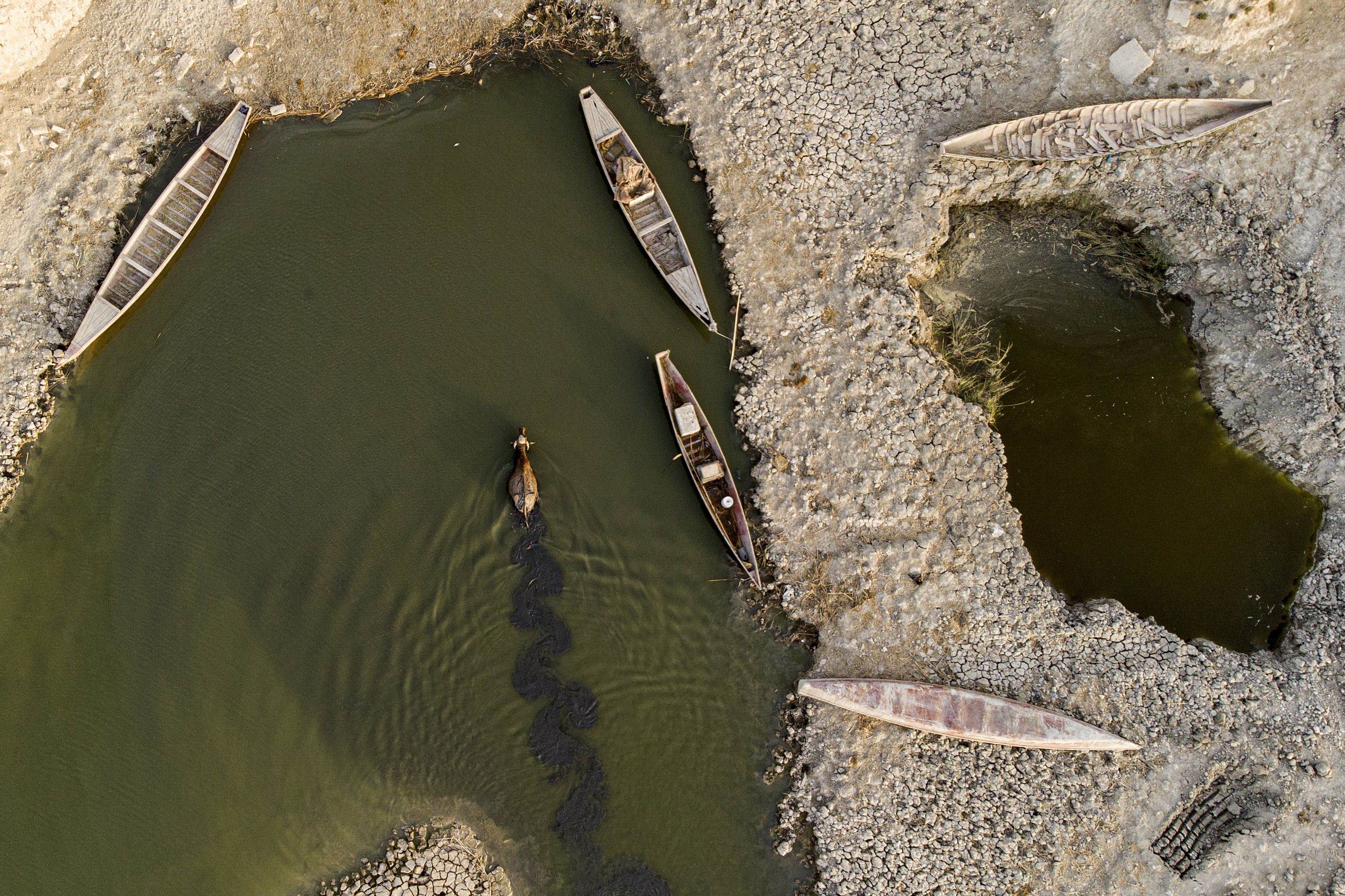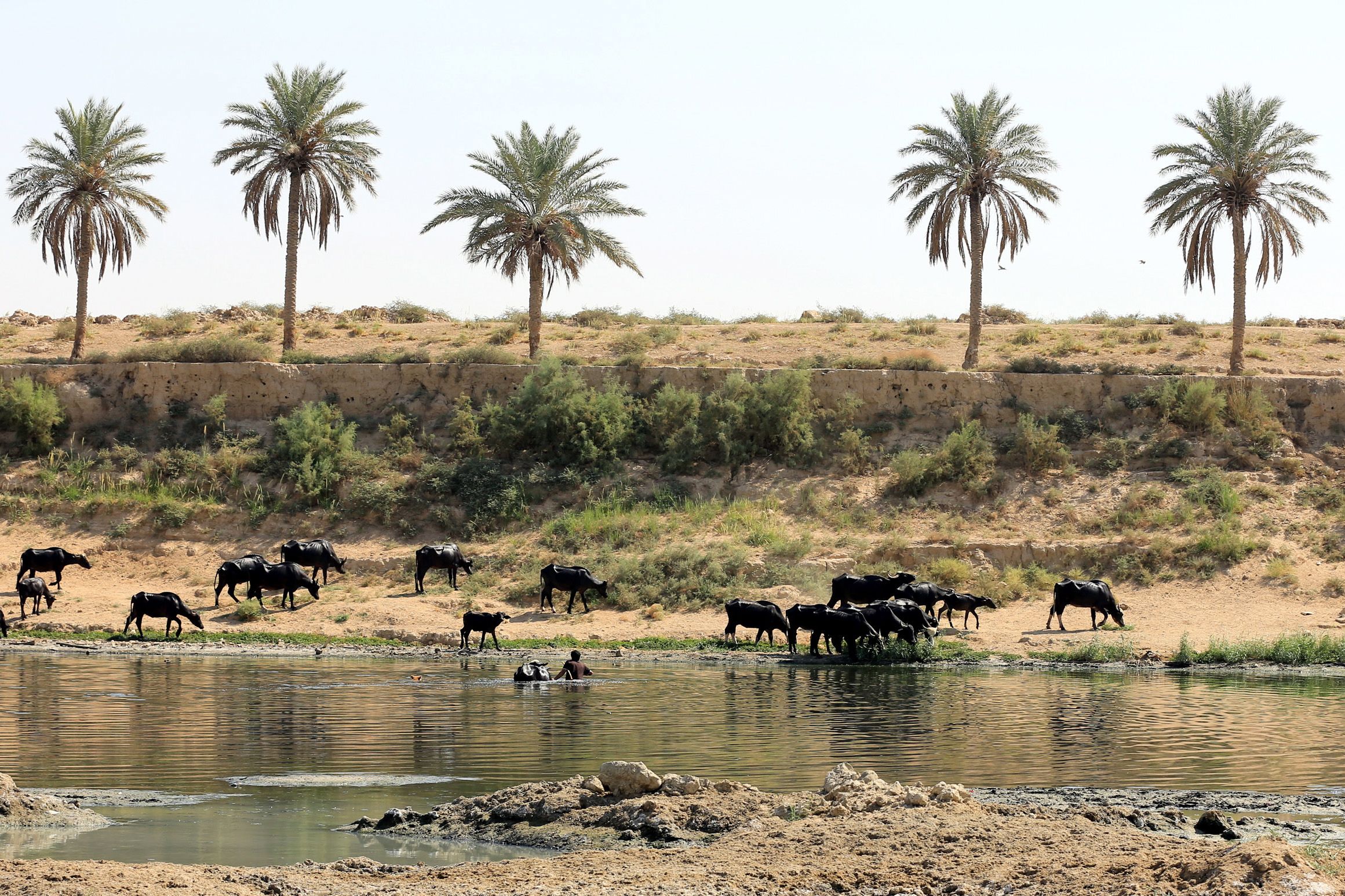 Buffalo in the Diyala river, Iraq, which in June 2022 turned into pools of sewage water due to desertification and pollution. EPA