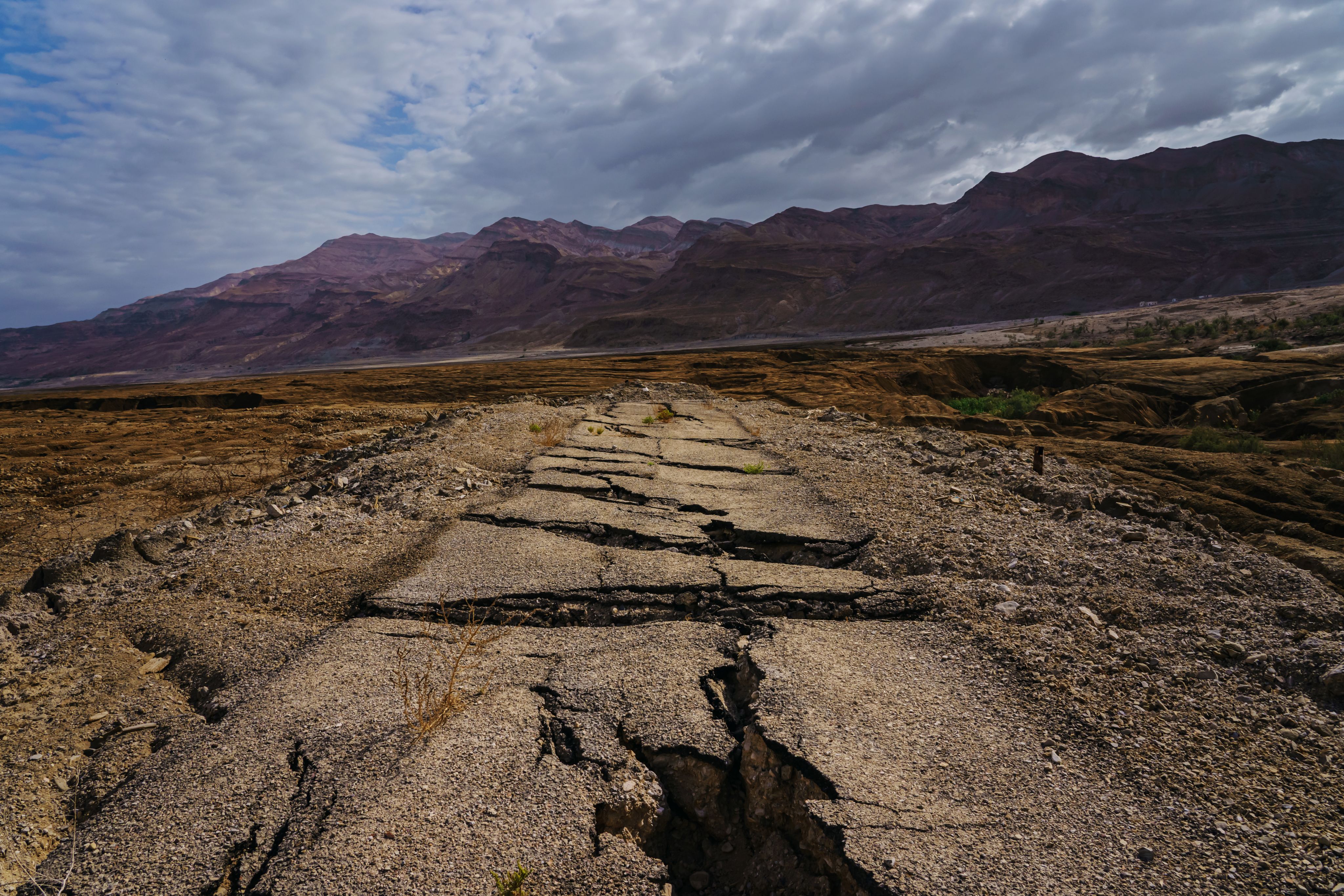 A damaged road along what used to be the shoreline of the Dead Sea in Jordan, in April 2021. Getty Images