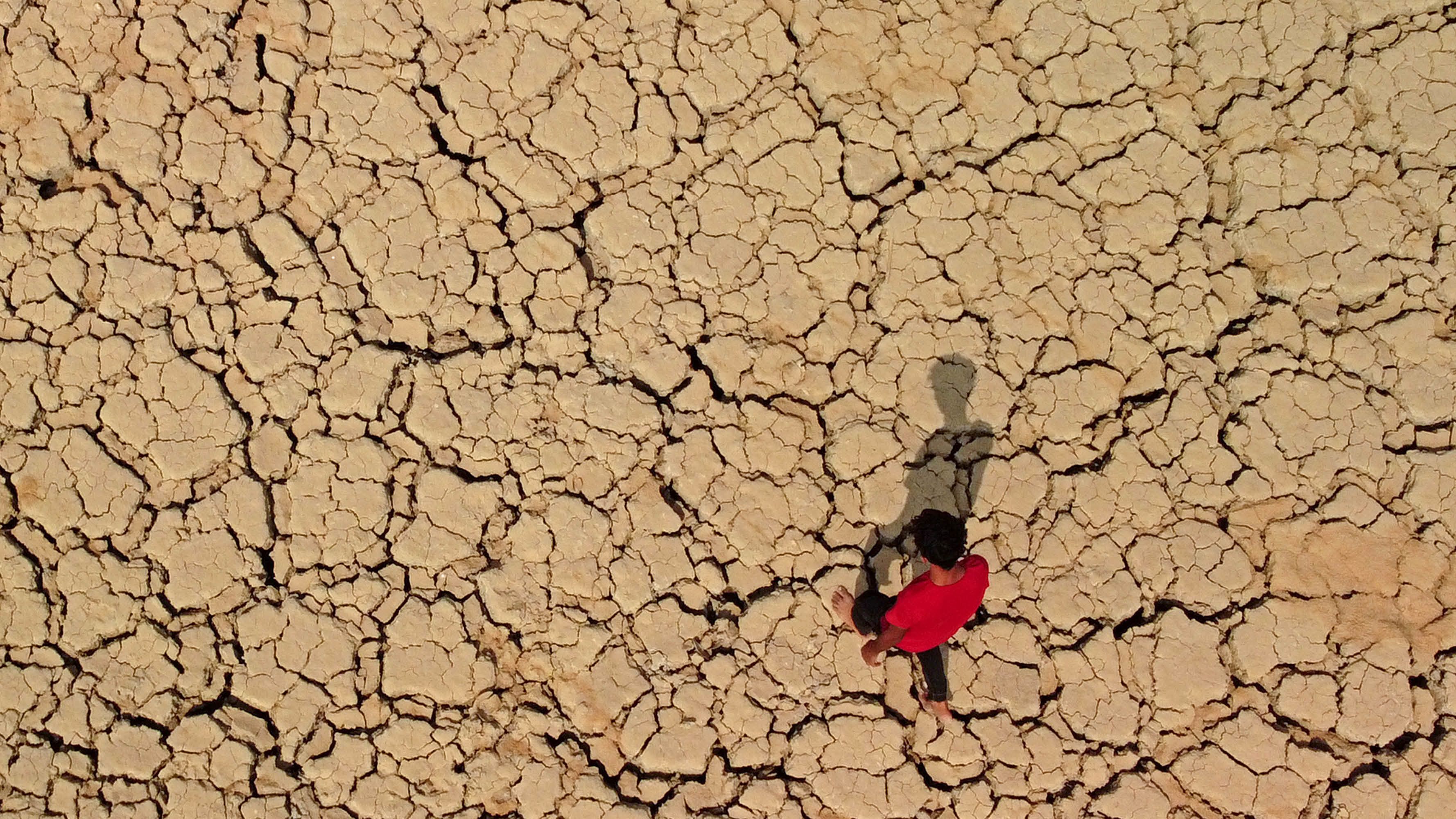 A young man walks across cracked and dried up soil at the Hawizeh marshes in October 2022. AFP