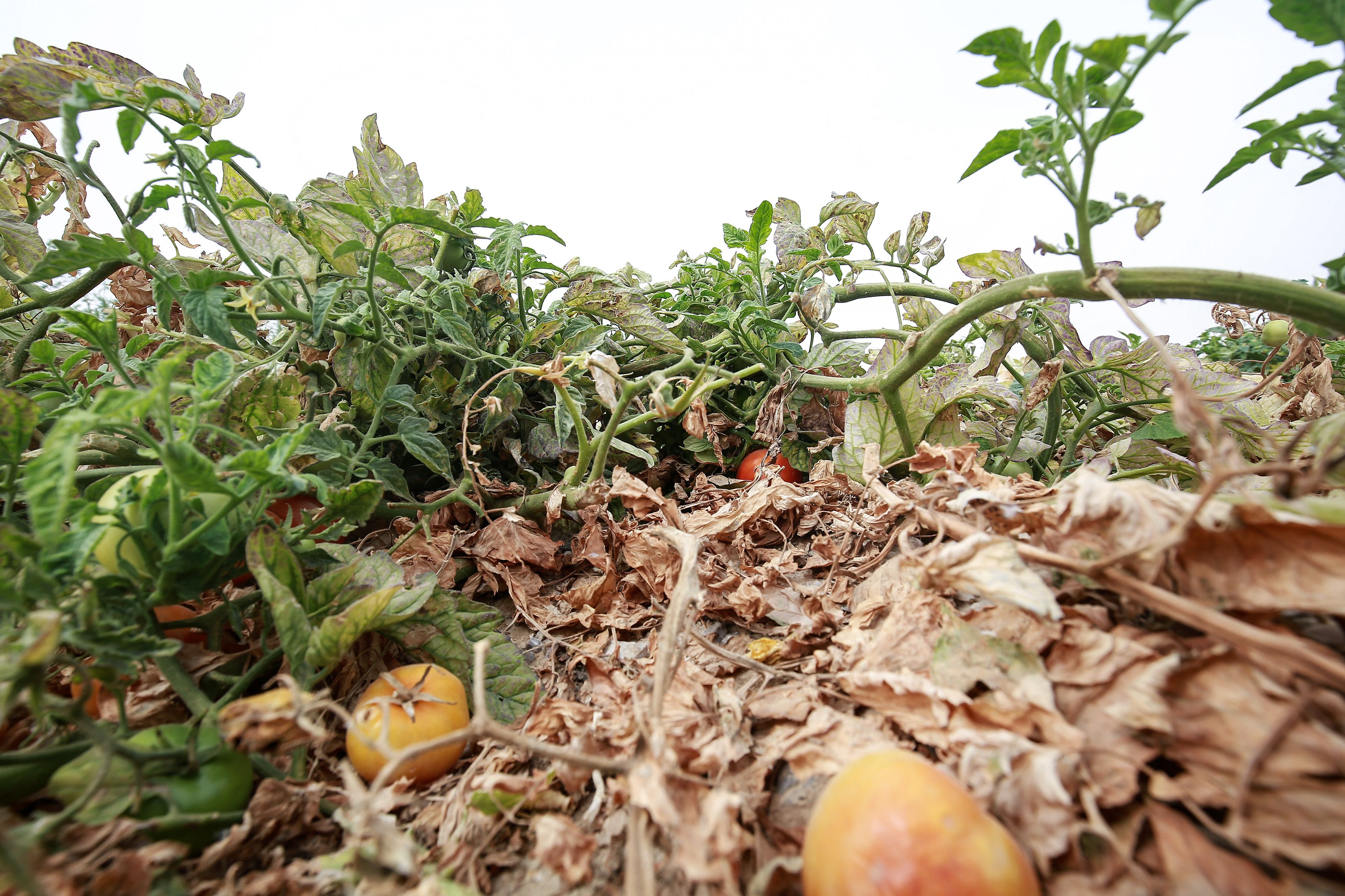 Tomato crops are left to die in the hot sun due to the lack of sufficient water for irrigation in Amman in April 2021. AFP