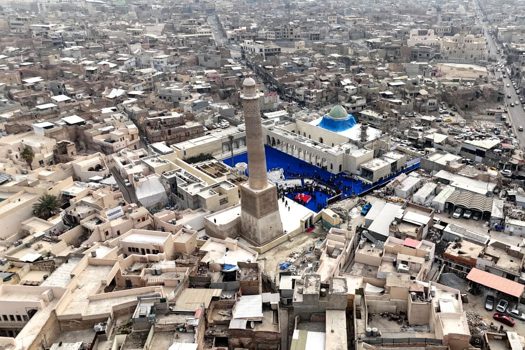 The leaning minaret of Al Nuri Mosque, which stood over the labyrinth of alleyways in Mosul’s Old City for almost 850 years before it was violently destroyed by ISIS, has risen proudly again as a guardian of history and a declaration that the northern Iraqi city endures, its spirit unbroken.