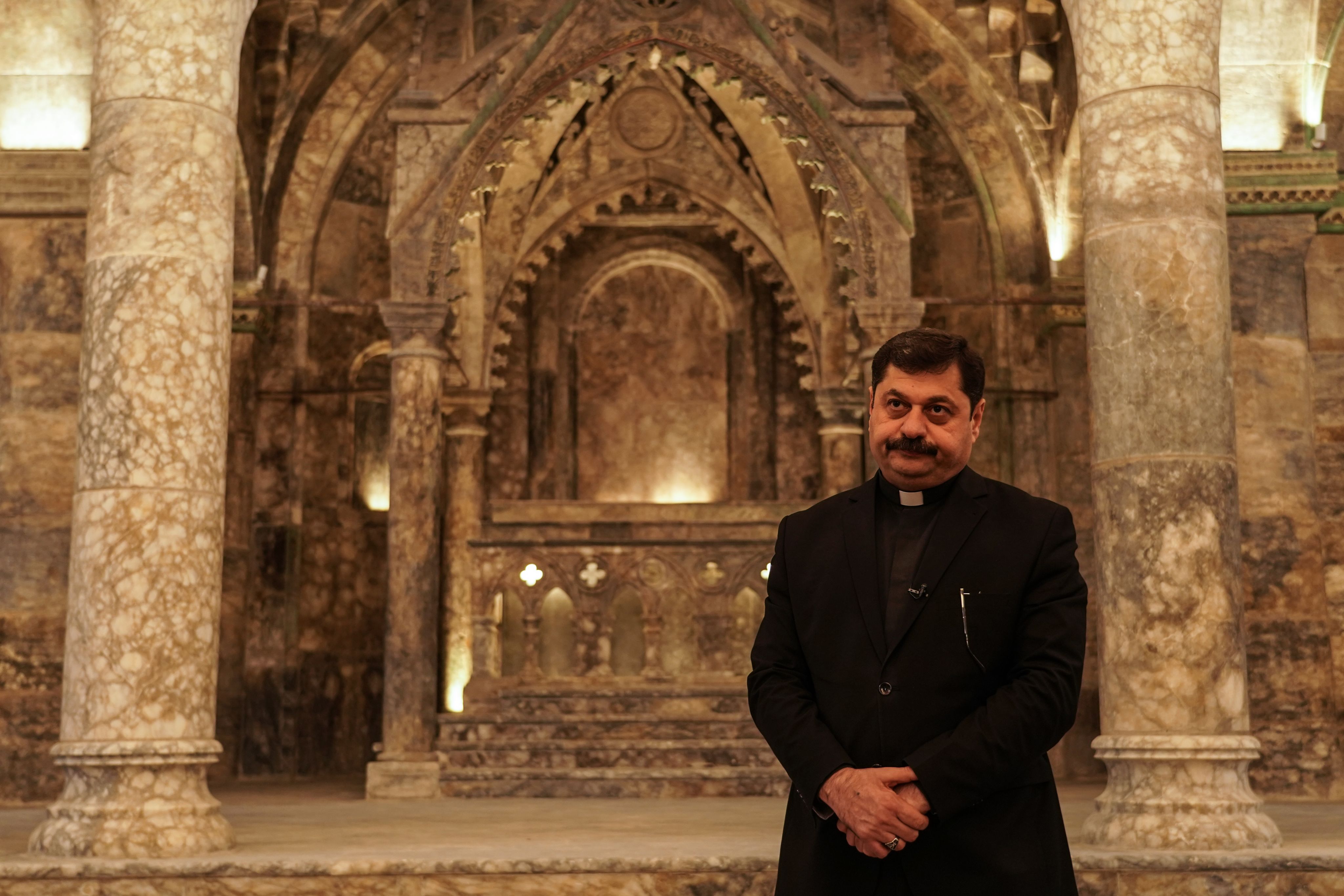Father Raed Adel says Al Tahera Church was used by ISIS as a prison before they destroyed it during their retreat in 2017. Aymen Al Ameri / The National