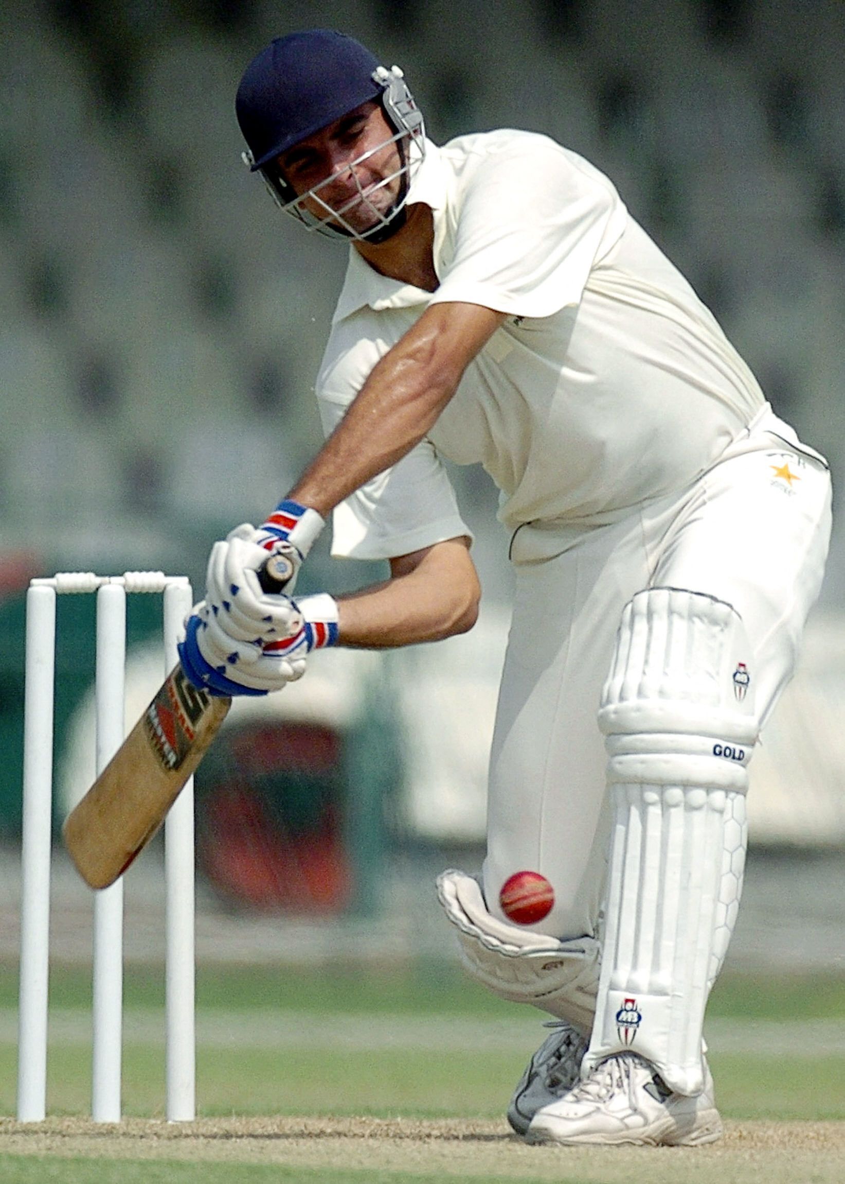 Riaz Afridi, brother of Shaheen Afridi, bats for Pakistan during a match against Zimbabwe in September 2004. AFP