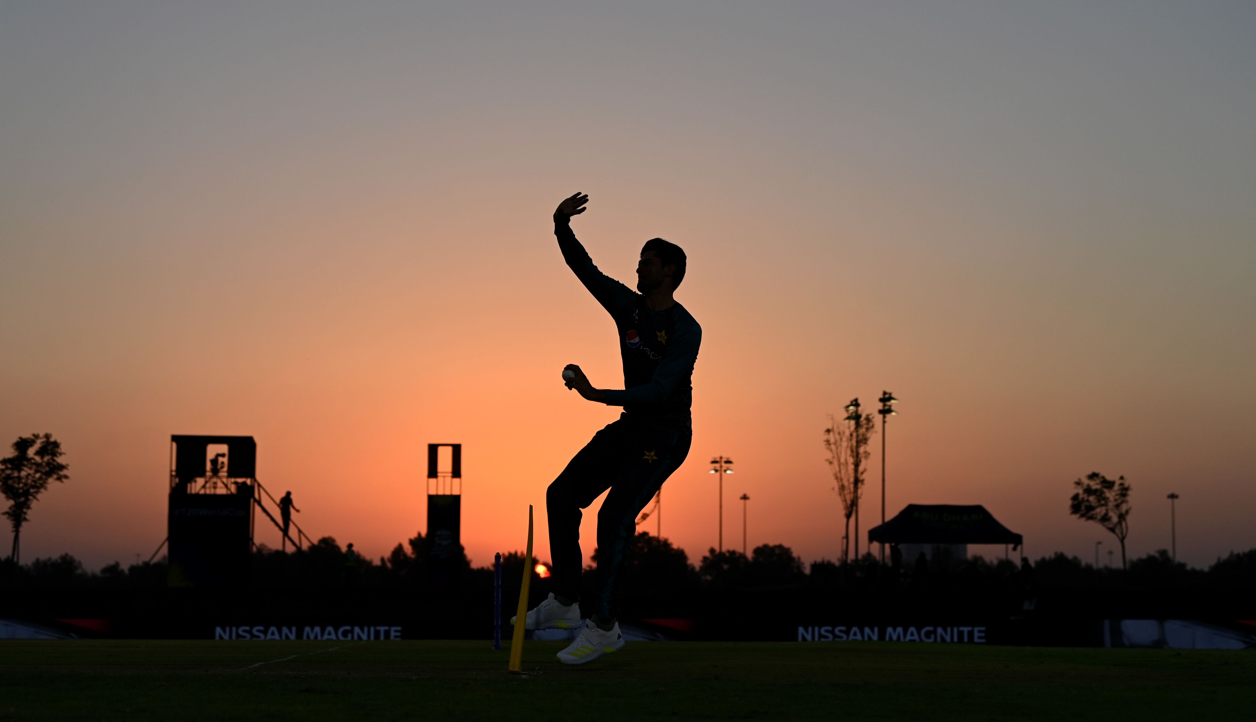 Shaheen Afridi warms up ahead of a T20 World Cup match in Abu Dhabi in October 2021. Getty