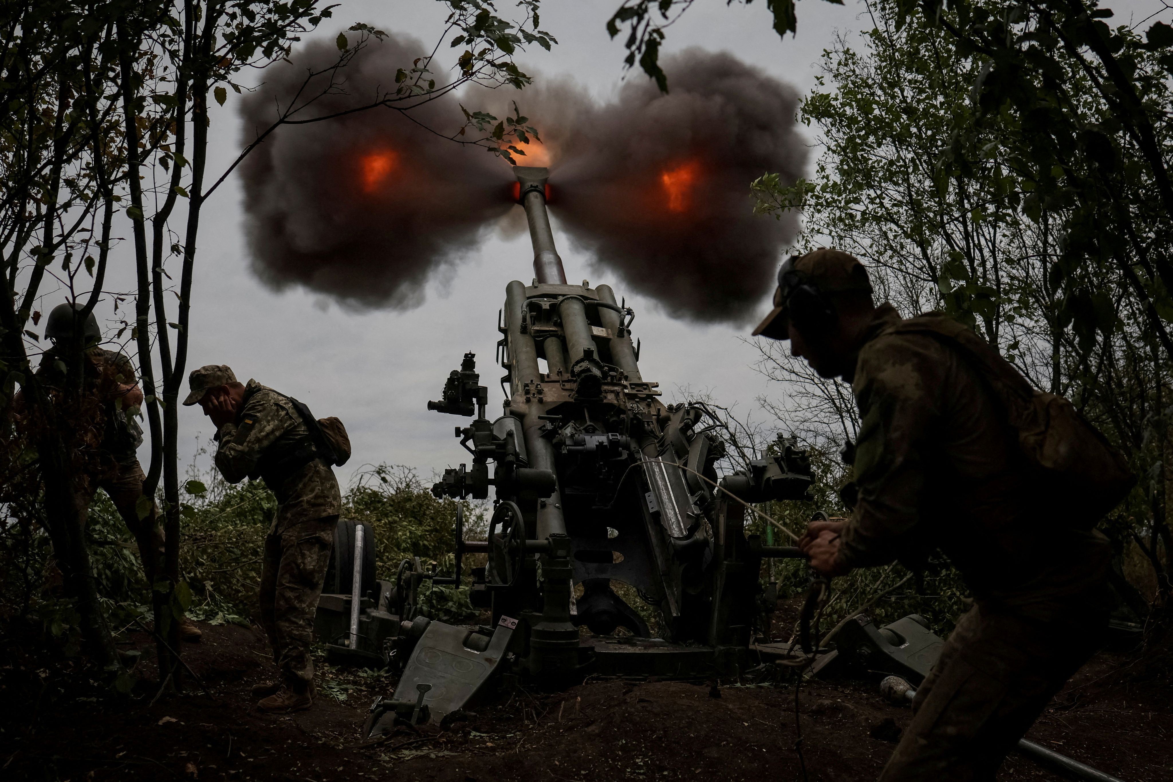Ukrainian service members fire a shell from a M777 Howitzer at a front line in Kharkiv onJuly 21, 2022. Reuters