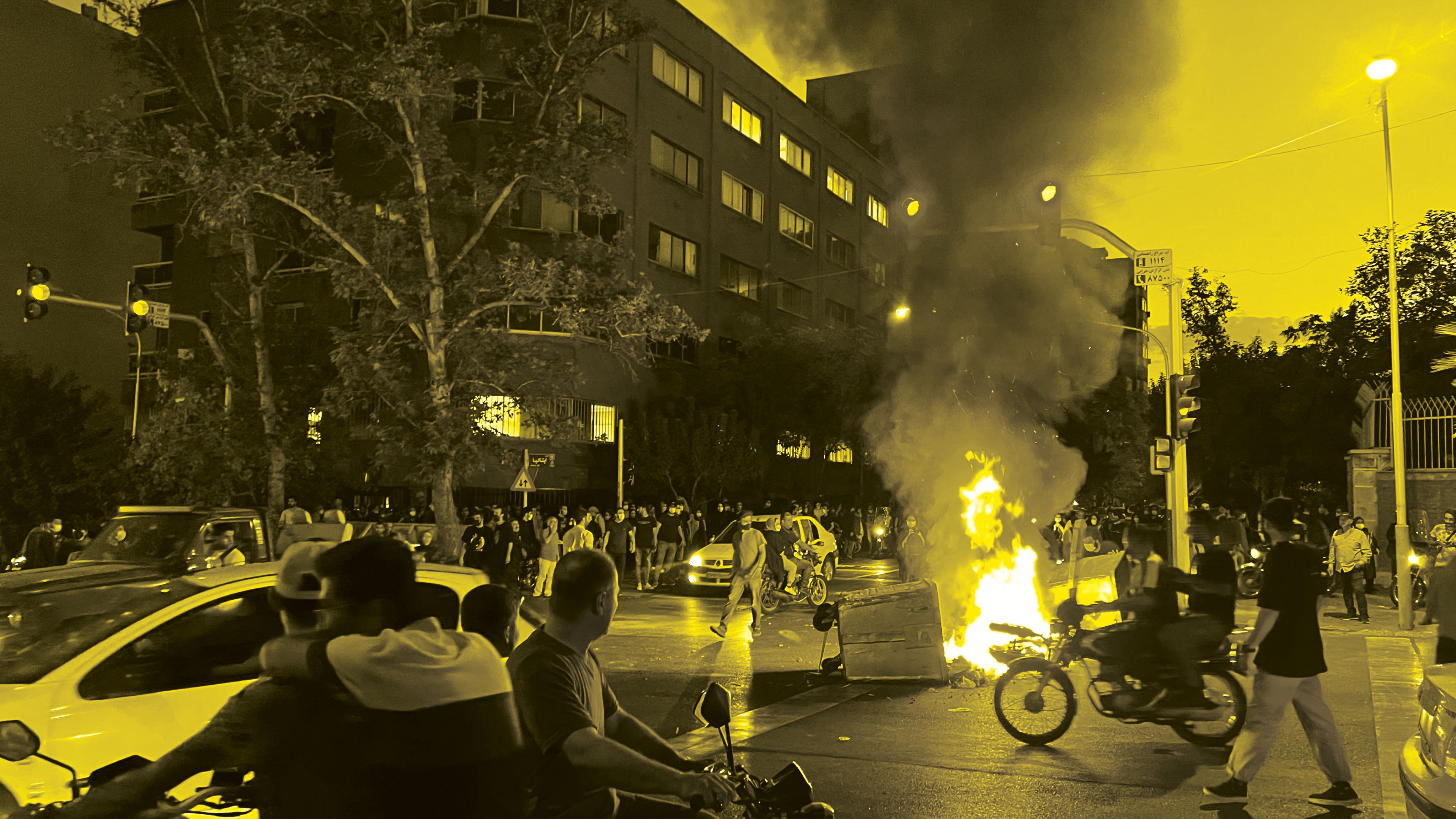 A police motorcycle burns during a protest over the death of Mahsa Amini in Tehran on September 19, 2022. Wana