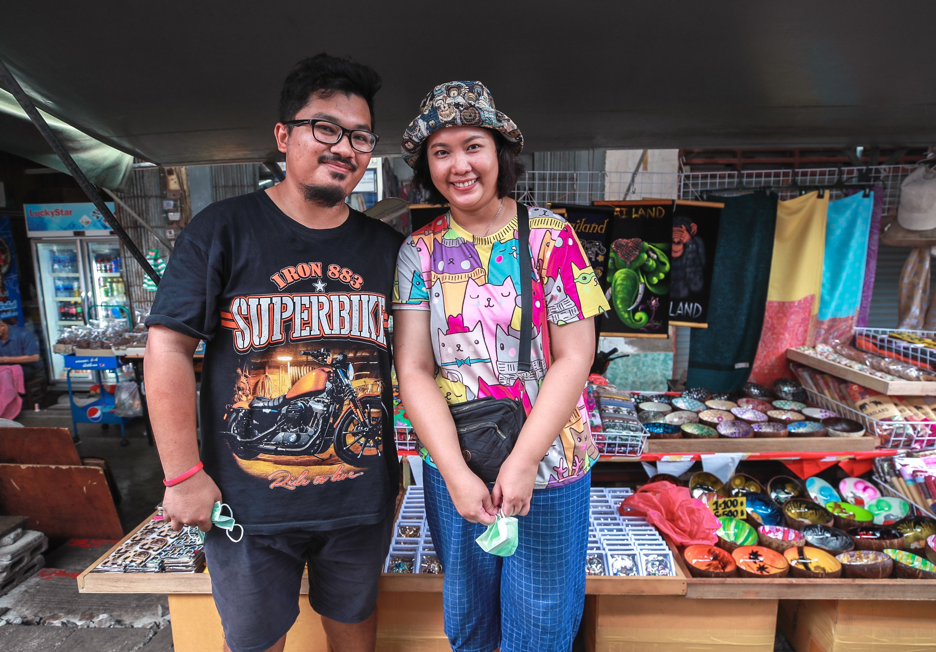 Their shared passion for sales and outgoing personalities prompted them to open a shop beside the Mae Klong Railway Market, selling locally made linens and handicrafts.
